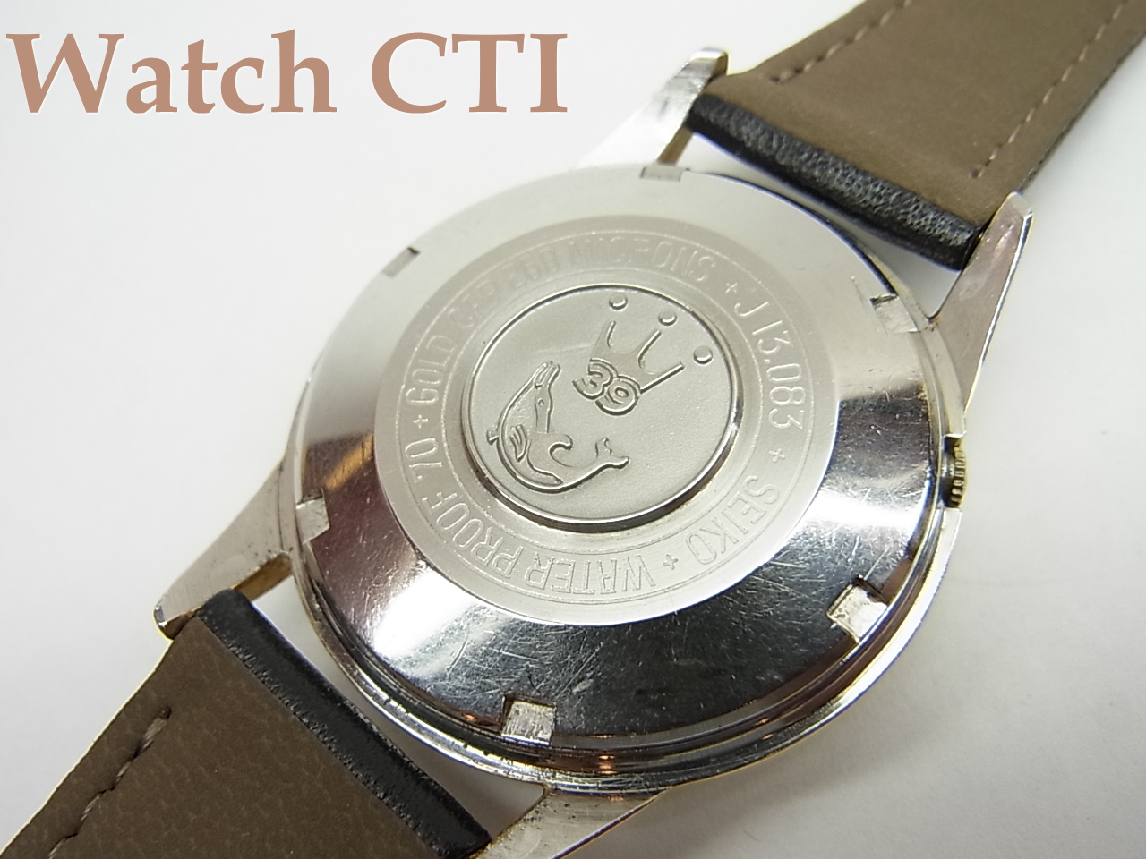 セイコーおなじみのトップゴールドケースは260ミクロン厚の14金の板がステンケースに被せてあります。なのでケーストップ側から見たその外観は正に「金ムク」でした!そこにマチック系最高ムーブを搭載して世に問うたものです。