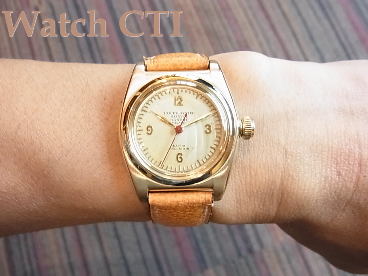 バブルのファーストと同じケースサイズに同じく「でかリューズ」の外装で遠目にはバブルかフラットか区別は付きません….。