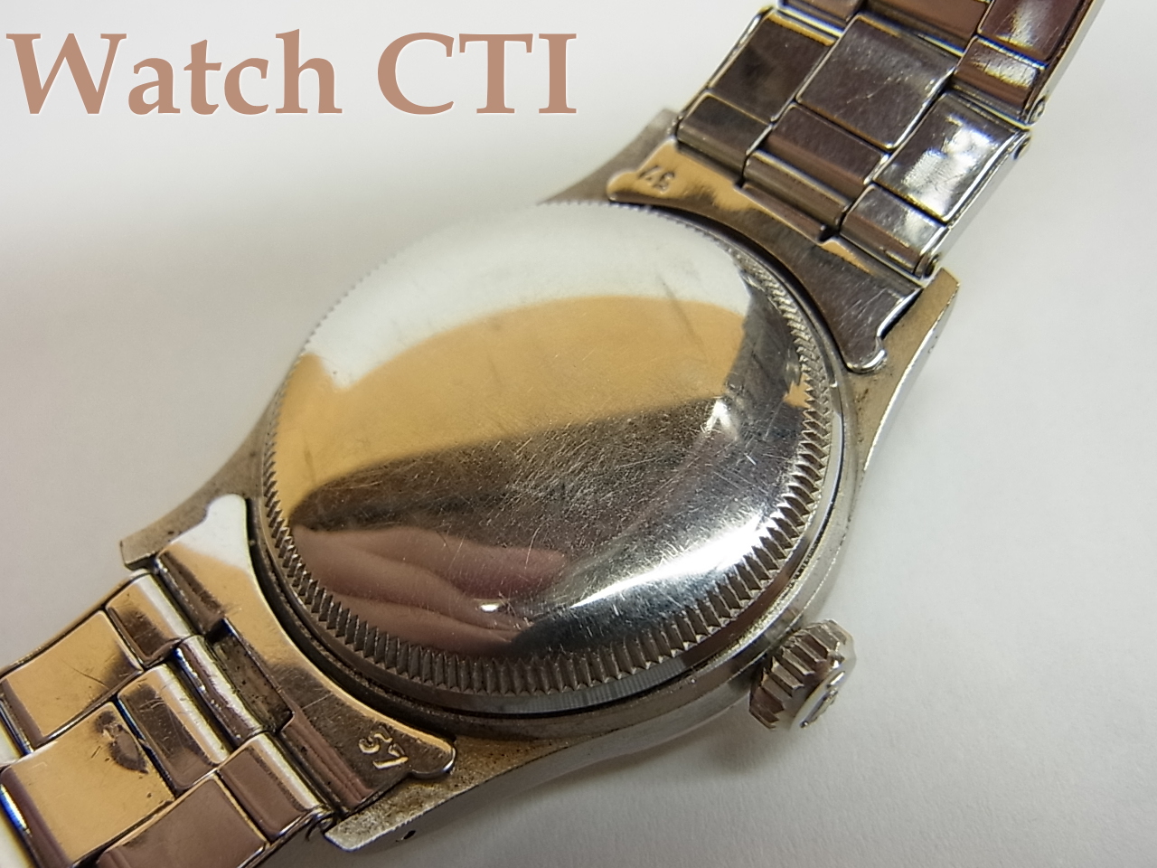 文字板の表面は所謂「パウダーホワイト」で中央部にちょっとした焼けがある以外は程度良好です。ケースも恐らくノーポリッシュかと思います。