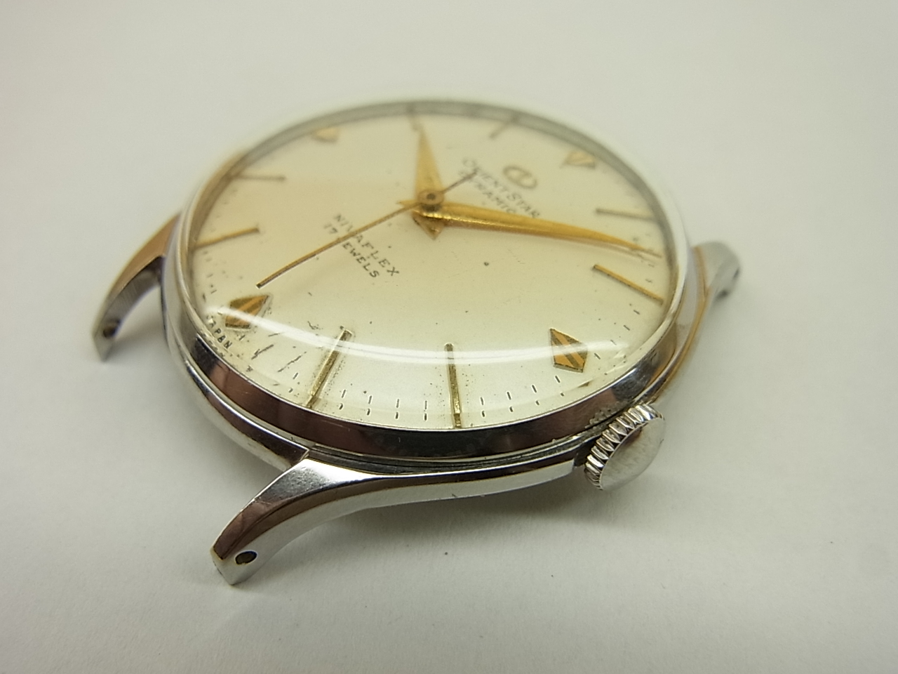 2) 作動はしますが、日差・テンプの振り等が安定しない状態の品になりますので、ご使用になられる場合は早めのOHをお薦め致します。要OHの状態です。日常使用には向きません。