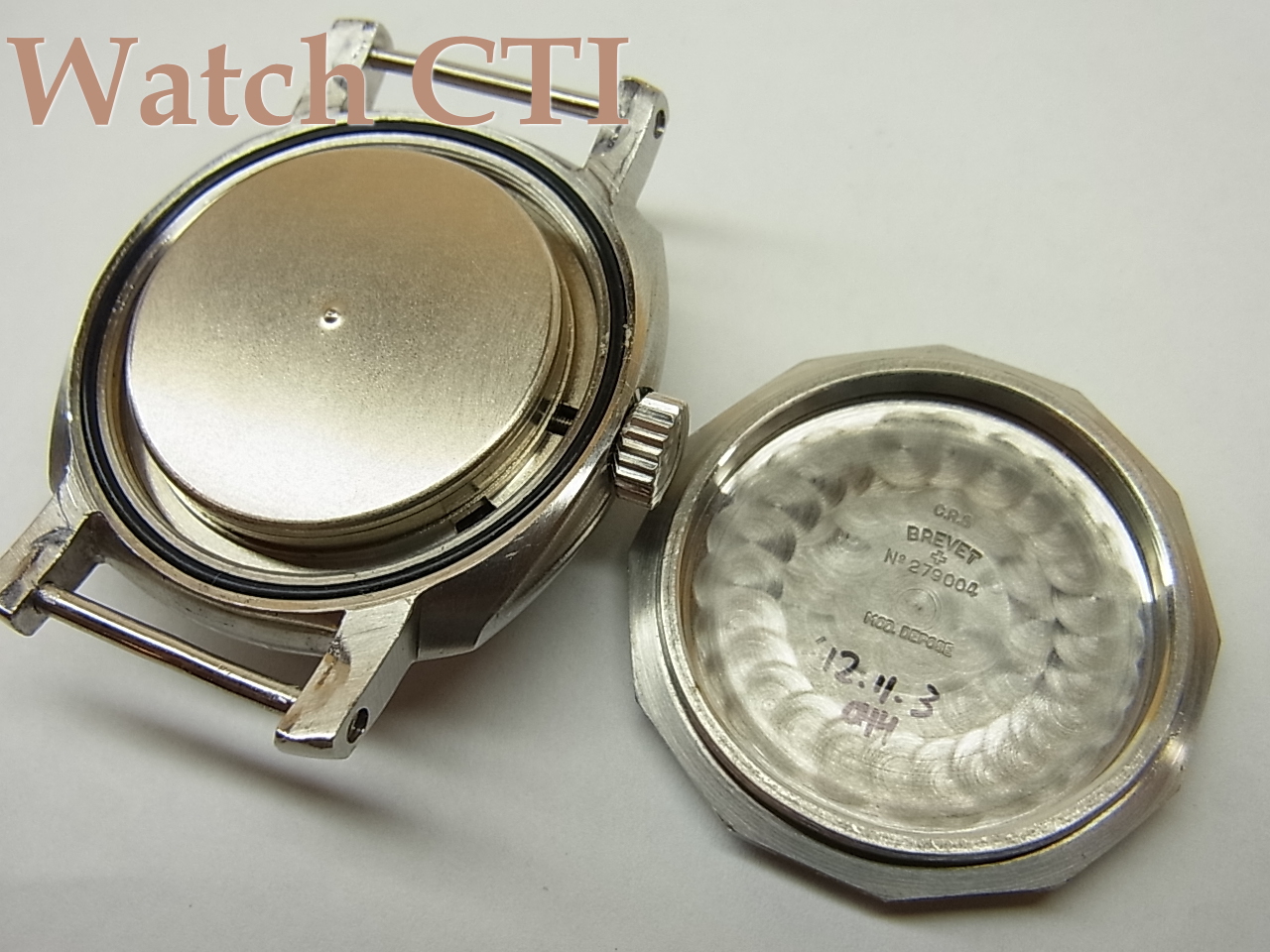 しかも、しかも、その某メーカーとは….なんと、ロレックス社の手巻デイトナ等のオイスターケースを作っているメーカー(Charles René Spielman) です……因みにスイスの時計メーカー、クロトン社の製品にも同じケースを使った機種が出ています。