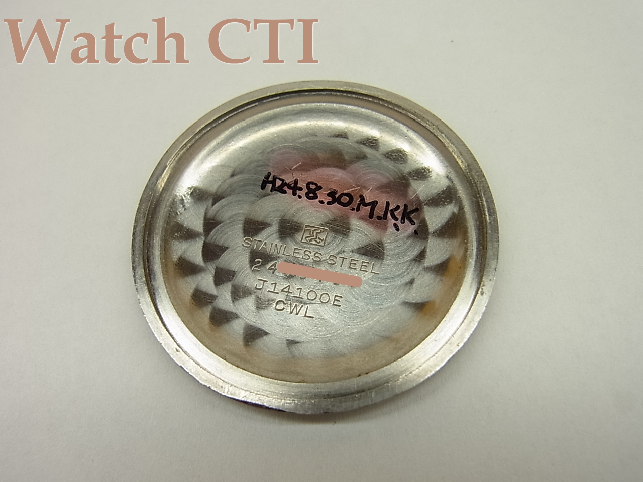 そうそう、ケースサイズに2種類ありまして、現品は14.5型の文字板が入る小さいほうのモデルです。(もう一つは15型文字板)