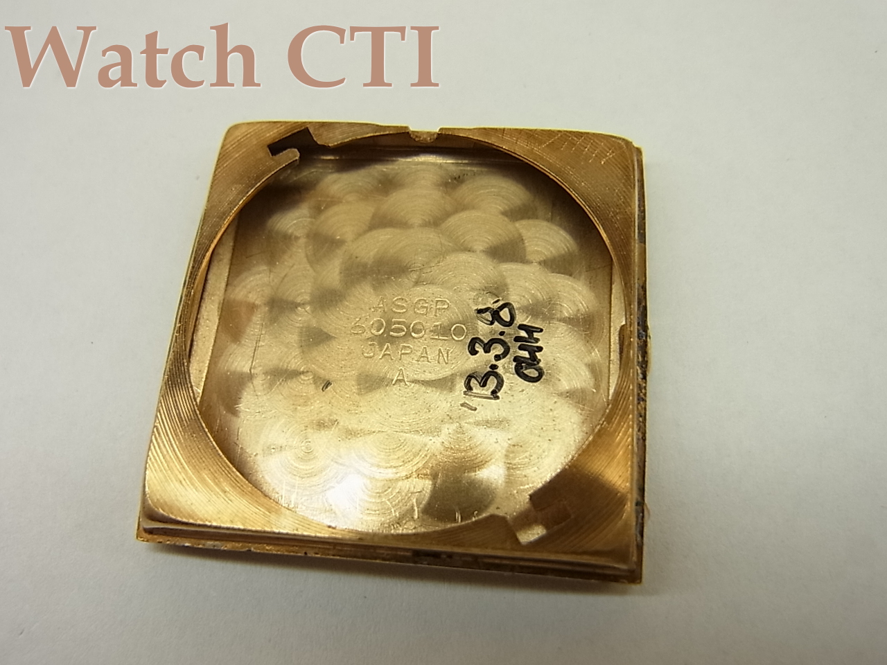 高級機らしく端正なつくりの文字板とケースに組み合わされて発売されましたが、現品の角型は、そんな中でも非常に少数が生産されたようです。