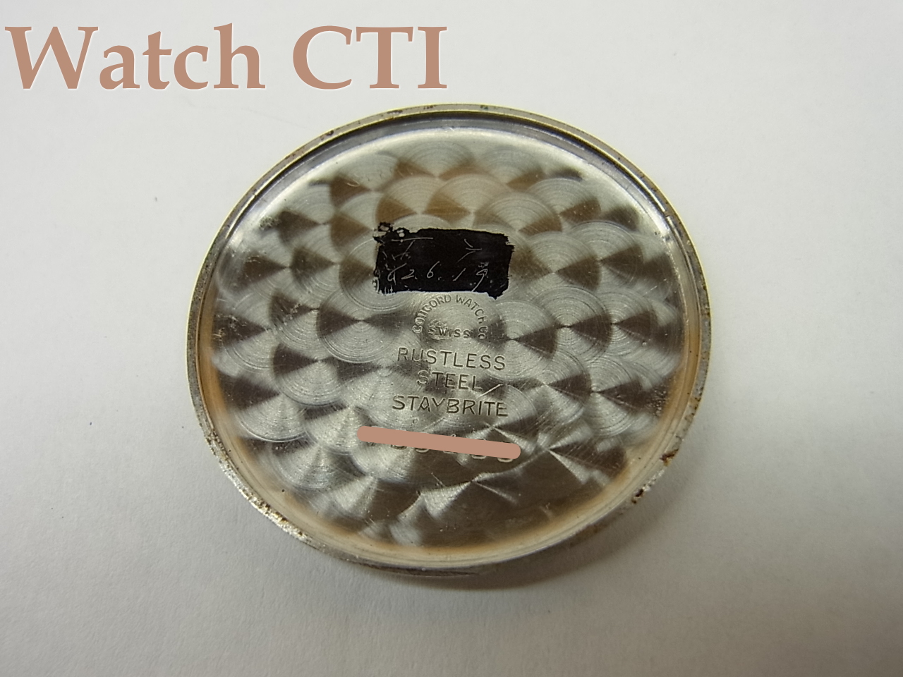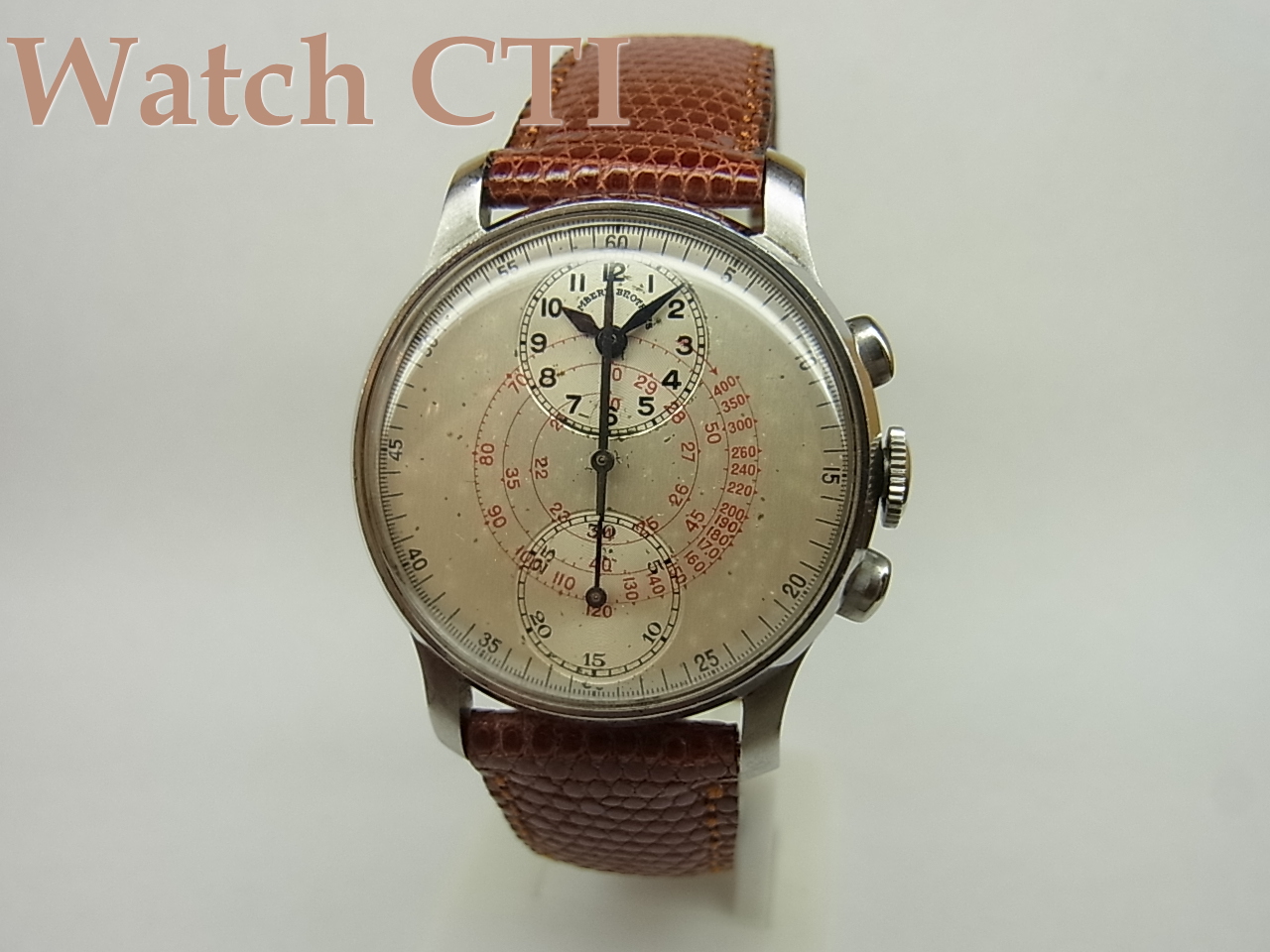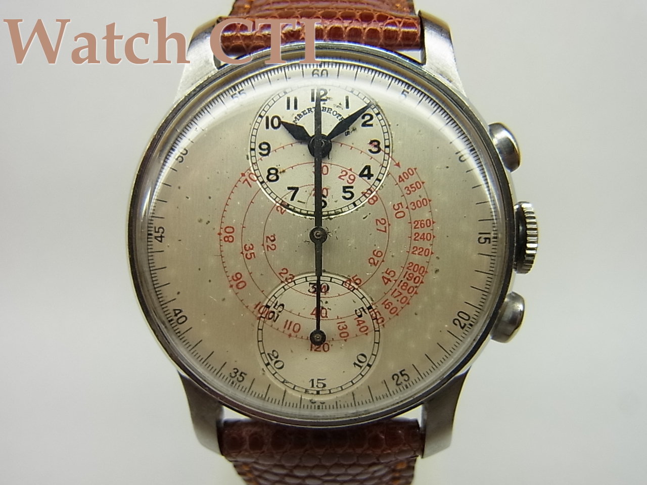 ☆文字板12時の「ちび時計」部分に「ランバートブラザーズ」銘が小さくプリントされておりますが、ケースと機械の刻印は、コンコルド・ウオッチ・カンパニーですので、コンコルドがランバートから別注を受けた所謂ショップウオッチかと推察されます。ちなみに、「ランバートブラザーズ」が」どのようなショップであるか不明ですスミマセン。