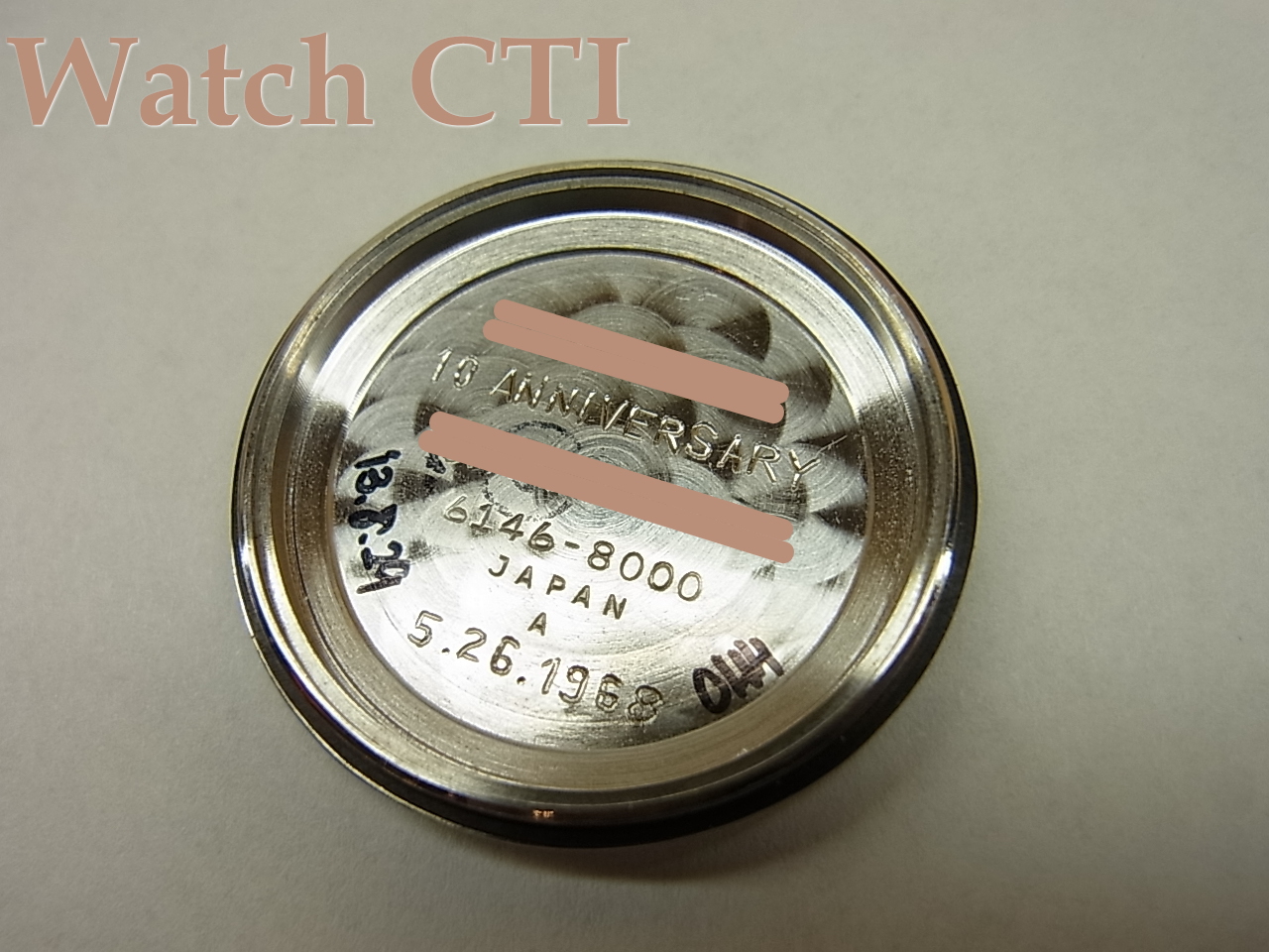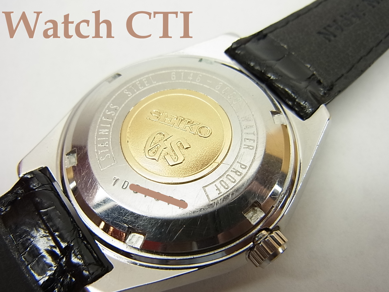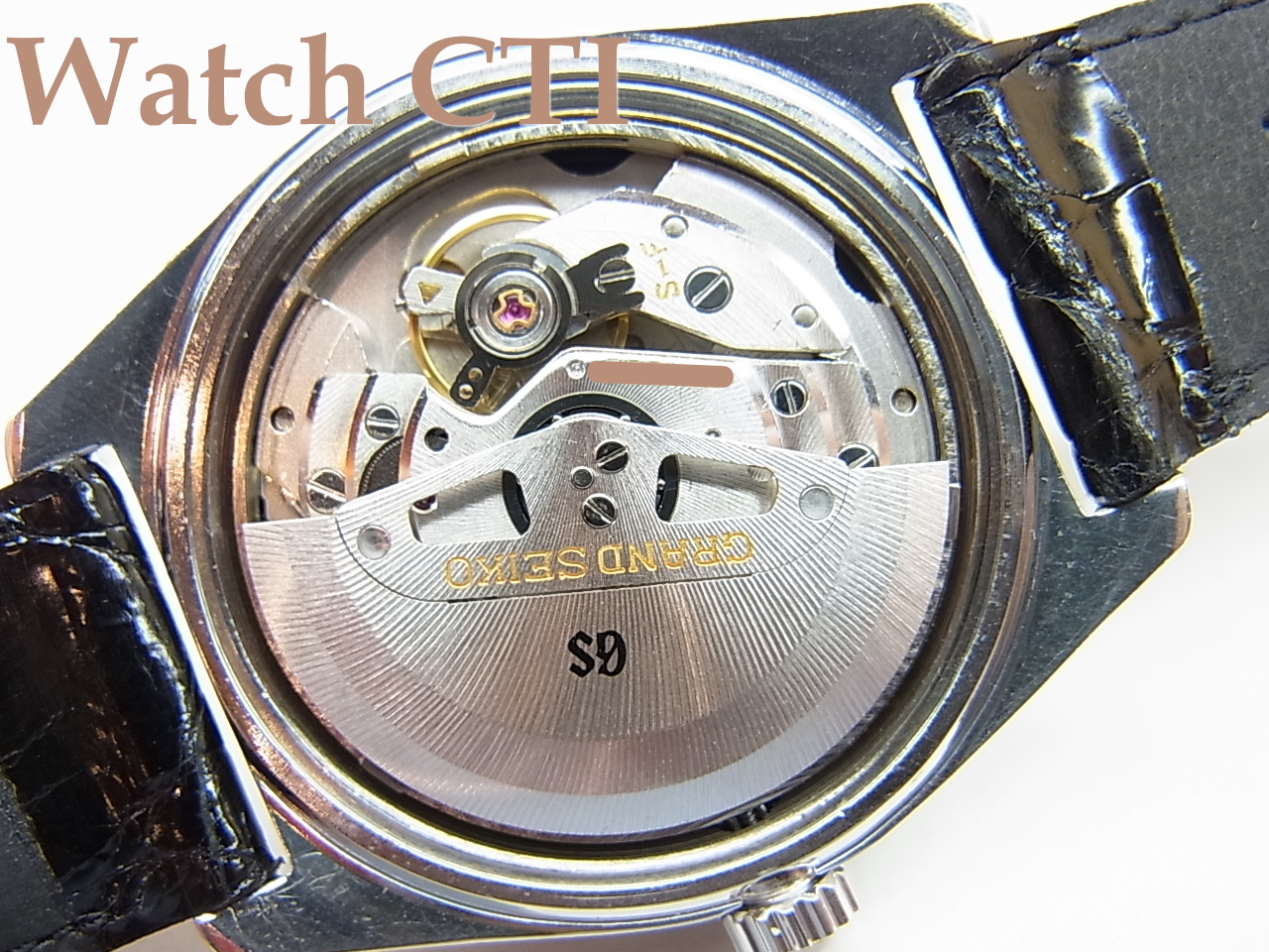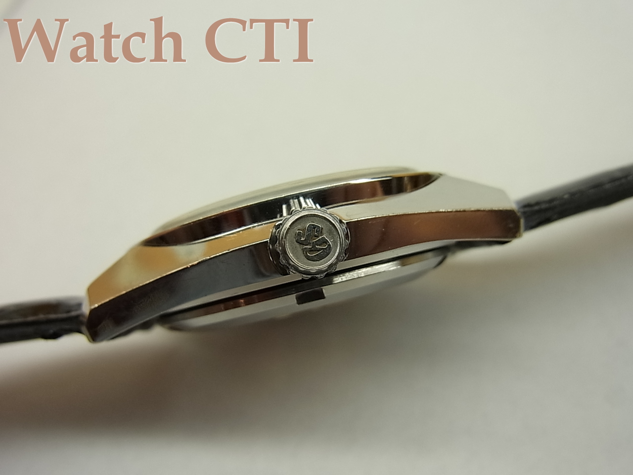 最初期型の特徴は前回の説明で記しました(>>>こちら)が、文字板のGSマークとロゴは今回入荷分は一般に認識されている艶ありメッキ仕上げGSマークと太めな書体のロゴとなります。状態は全体的に今回入荷のほうがバランスよく保たれております。前回入荷品にみられたメダリオンの穴やローター表面の腐食もなく綺麗です。なお、ケースバック内側に勤続記念の献辞が彫られているため、掲載画像では個人名・会社名を消し込んでありますが、現品実際はそのままですので御理解下さい。