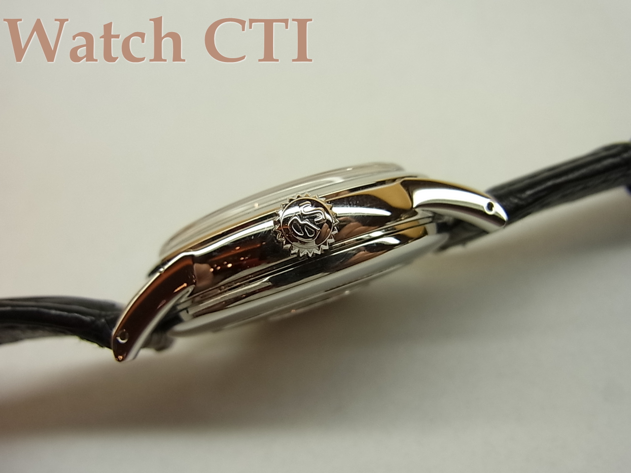 18Kホワイトゴールド製の文字板は「現代の名工」照井 清氏が丹念にアラビア数字のインデックスを手彫りしており、その均整のとれた仕上がりの美しさはちょっと言葉では思いつきません…..ルーペで観察するとさらに凄味が伝わってききます。照井 清氏は2007年に黄綬褒章を授与されております!