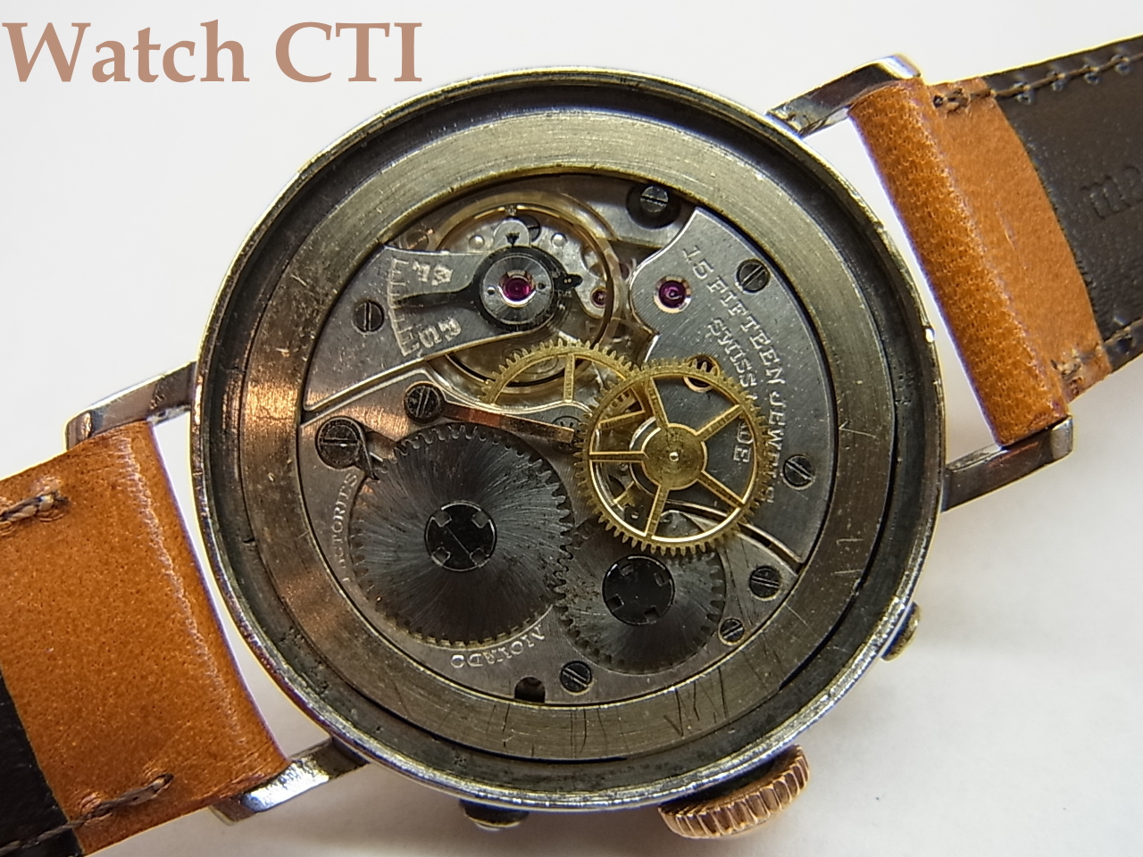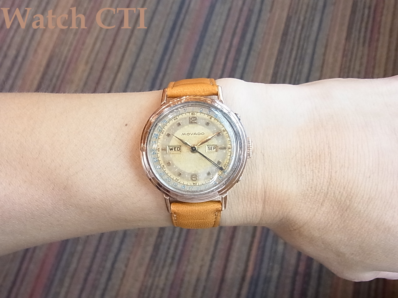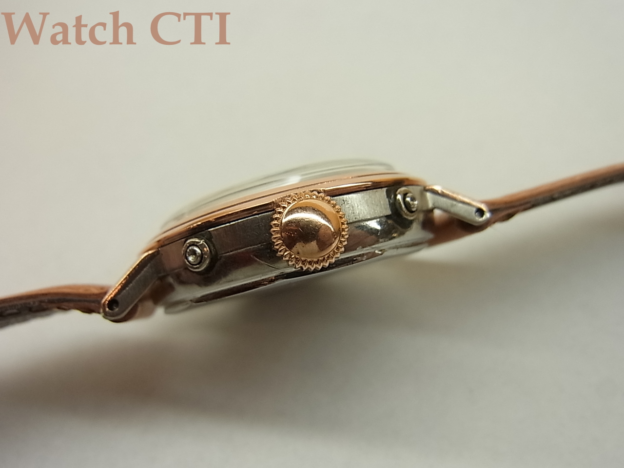 ベゼルとリューズはピンクゴールド色である点もこの「味わい」を醸し出すのに一役買ってますね。