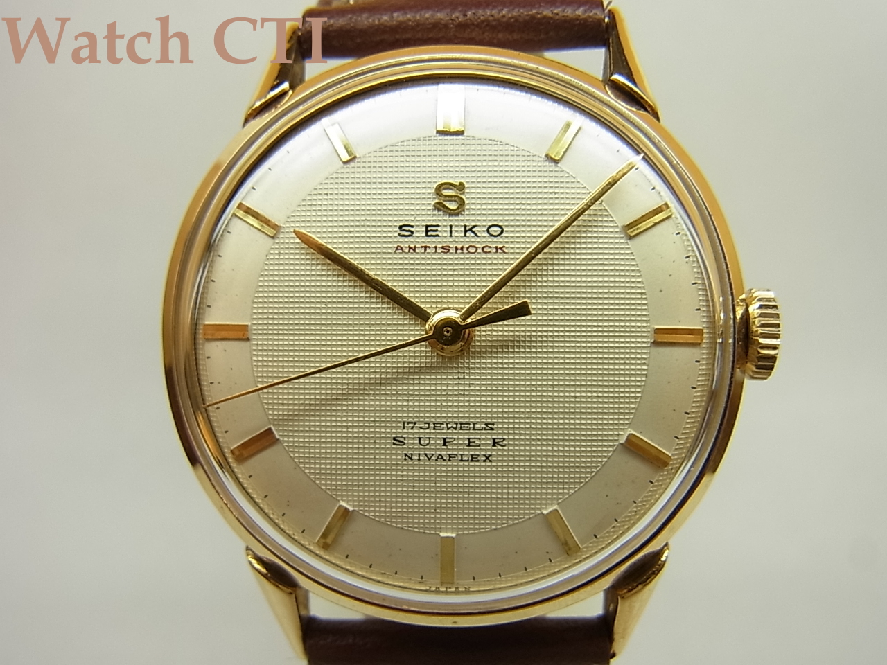 ☆金無垢(キンムク)腕時計….高級品である貴金属ケースの腕時計。戦後の混乱期から見事復興を遂げつつあった1950年代。その1950年である昭和25年に発売開始されたスーパーは戦後初の国産腕時計のヒット商品となりました!なにより「中三針・ナカサンシン」=センターセンコンド採用による外観の見栄えが最大のヒット要因でしょう。それまで腕時計と言えば、「スモールセコンド」がzたり前でしたし、一部高級スイス時計にしか「中三針」は見られなかたのですから….。