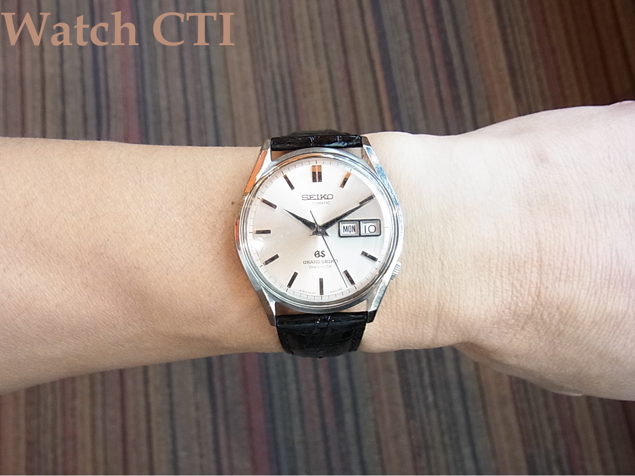 もうひとつ語られるダイアルのGSマークの大小では、縦長目のほうが初期で少々小さめな方が後期とされています。現品は小さめな方ですね。でも67年x月製でも大き目マークも有った記憶もあります…..正直不明なんです。恐らく製造過程でも新旧パーツの切り替えが正確にx月x日製造分を期して後期パーツになったということではないのではないでしょうか?
