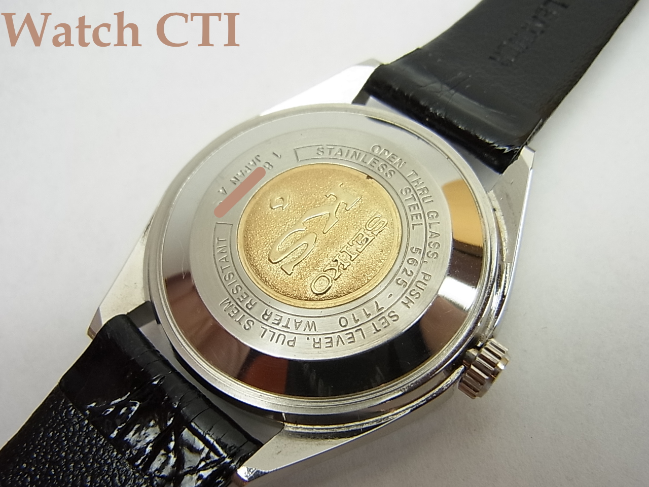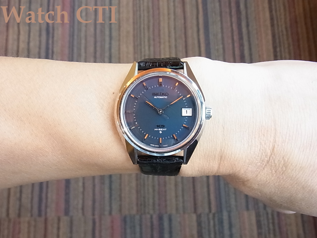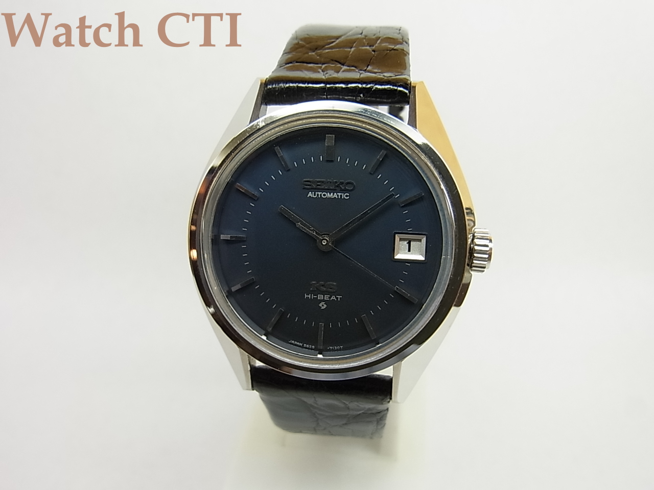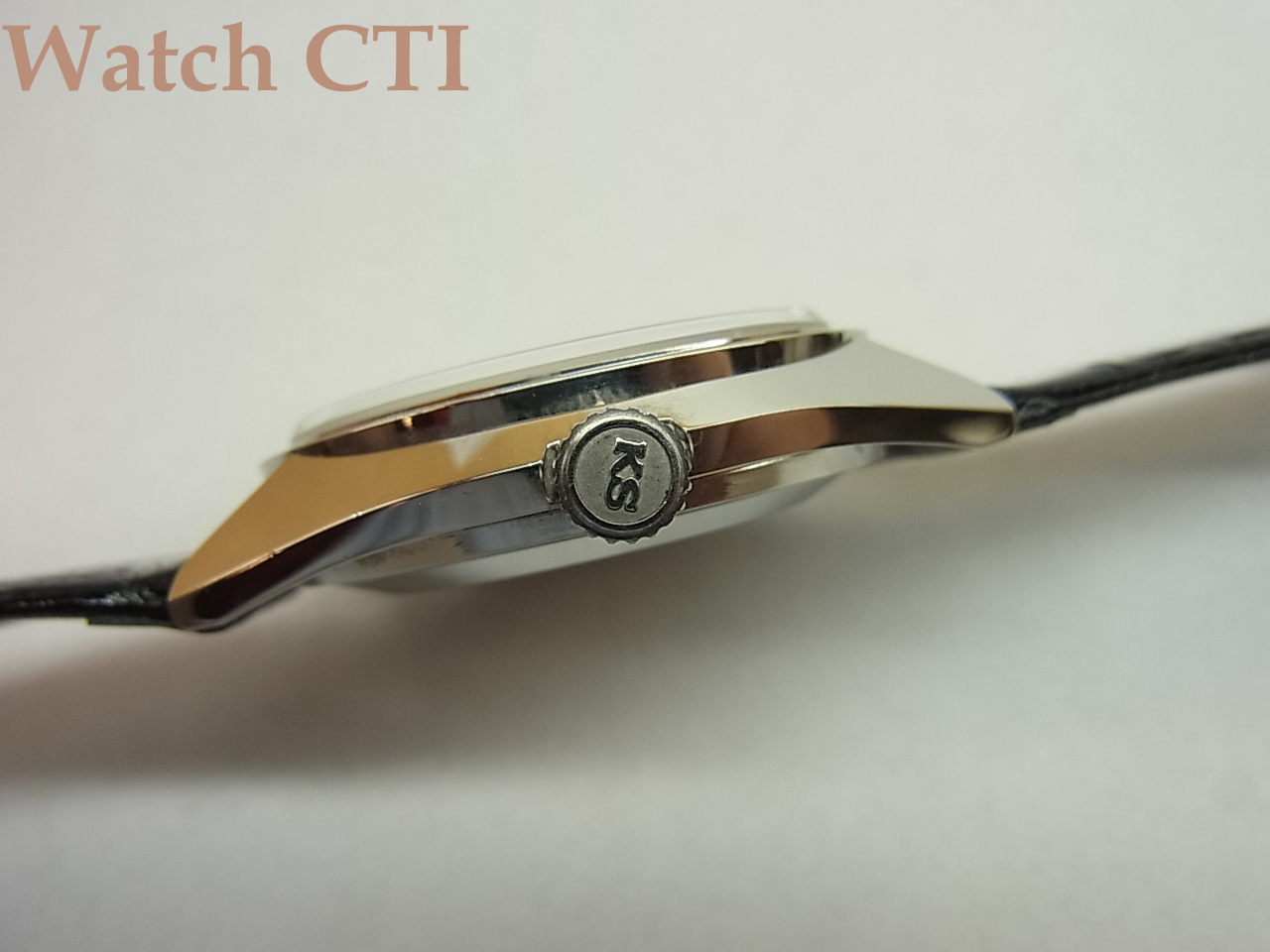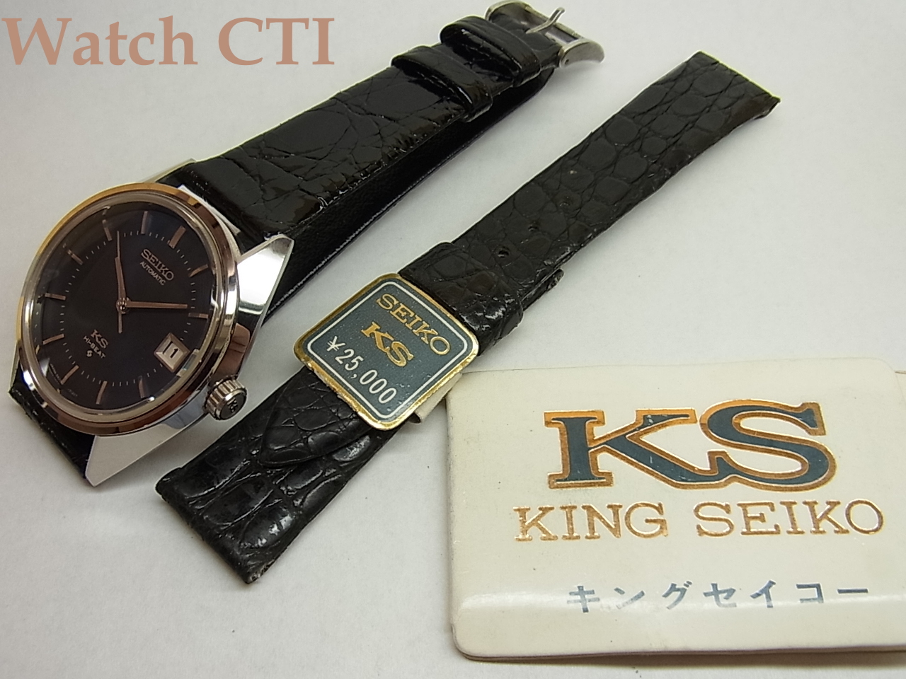 *状態は、過去に所有されていたコレクター諸氏がそれなりに腕に当てて楽しんだりした程度の準未使用状態ですね。実用使用はされていないってことです。純正のワニベルトもついたままでしたが、裏側がボロボロで使いものになりませんので、同形状の国産ワニでバックル部分も15mmの新品を付けました!KSの純正バックルもそこに移植してあります!元のベルトも資料として付属させます。当時の販売値札と取説も付属してます。