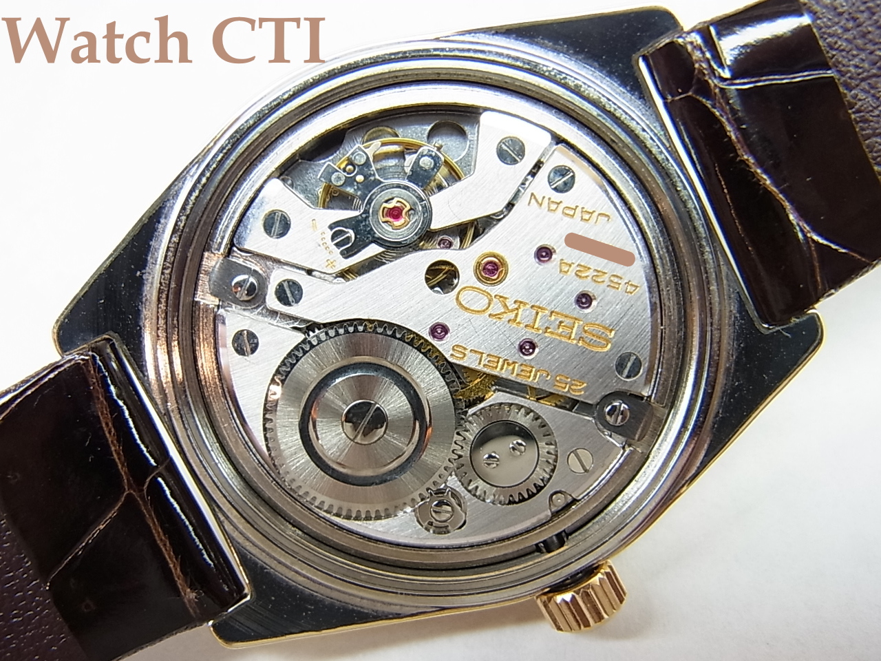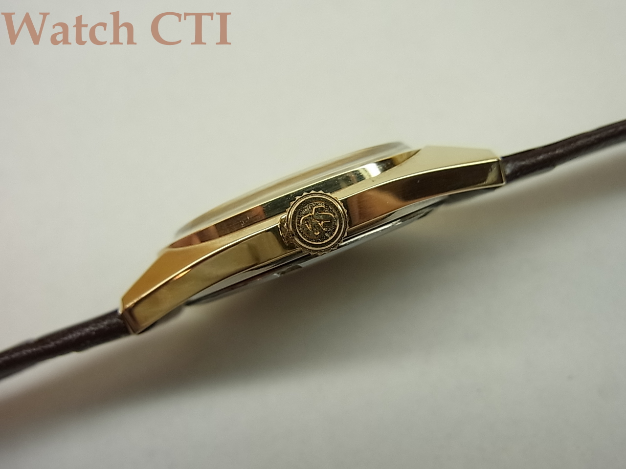 ステンレススチールのベースに極厚の14金板を被せて一体成型したこの方式は、表面は金無垢となんら変わらないために使用に伴う経年変化でエッジのシャープなラインに「ダレ」が発生してしまいます。さらに今流通している品は多くがポリッシュされてしまい、もはやオリジナルのケースシェイプを保っているもは非常に少なくなっているのが実情と言えましょう………。