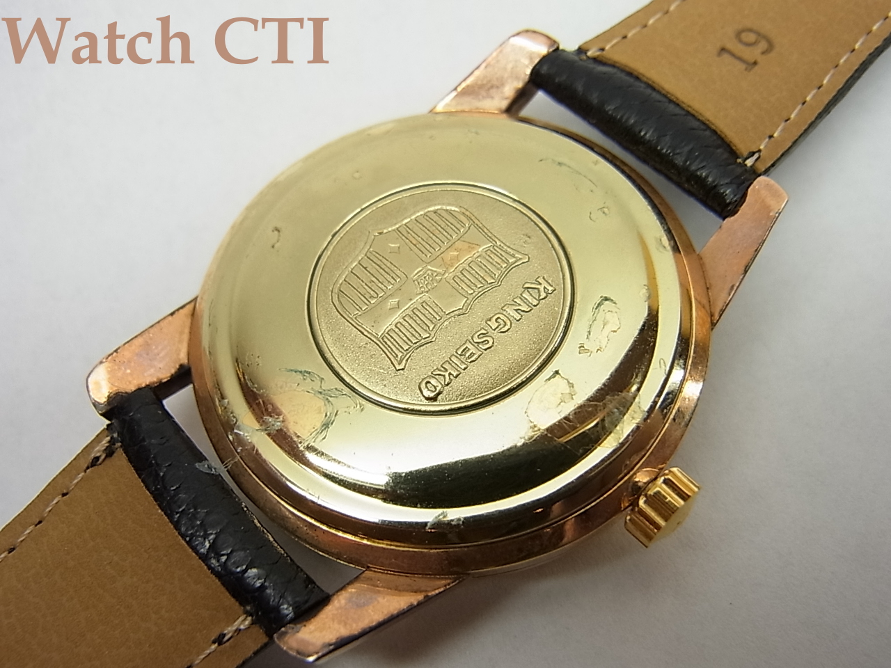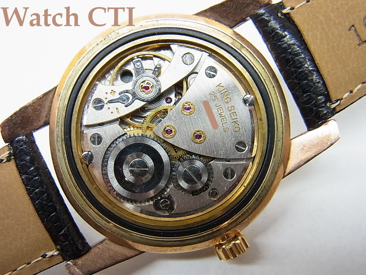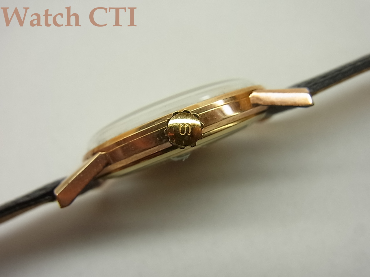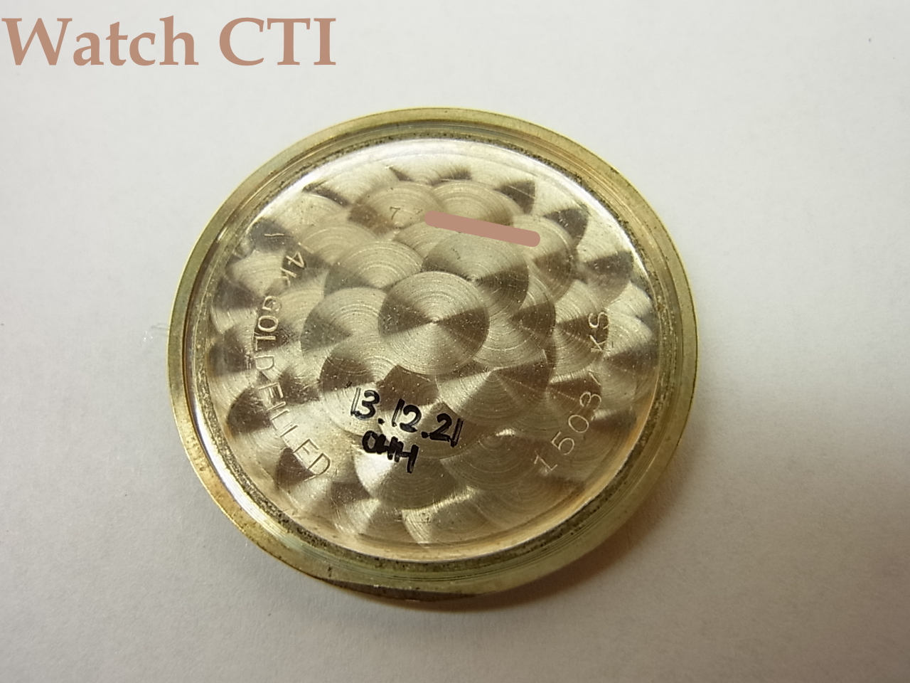 1.金張りケース独特の表面的な曇りが出ておりますが、下手に表面をポリッシュしてしまうと素晴らしい造形の、特にラグの面取りエッジ等が失われてしまいますので、かる~く表面をセームで拭いておくにとどめました。ケースバックには一部表面がはく離しつつありますが工場出荷時の防きずコートが全面に残ったままですよ!