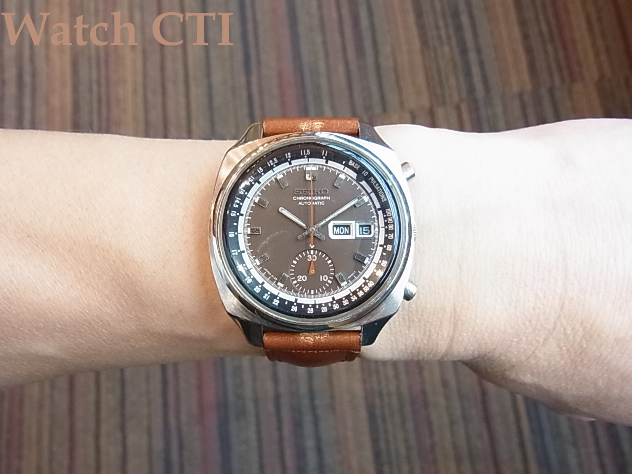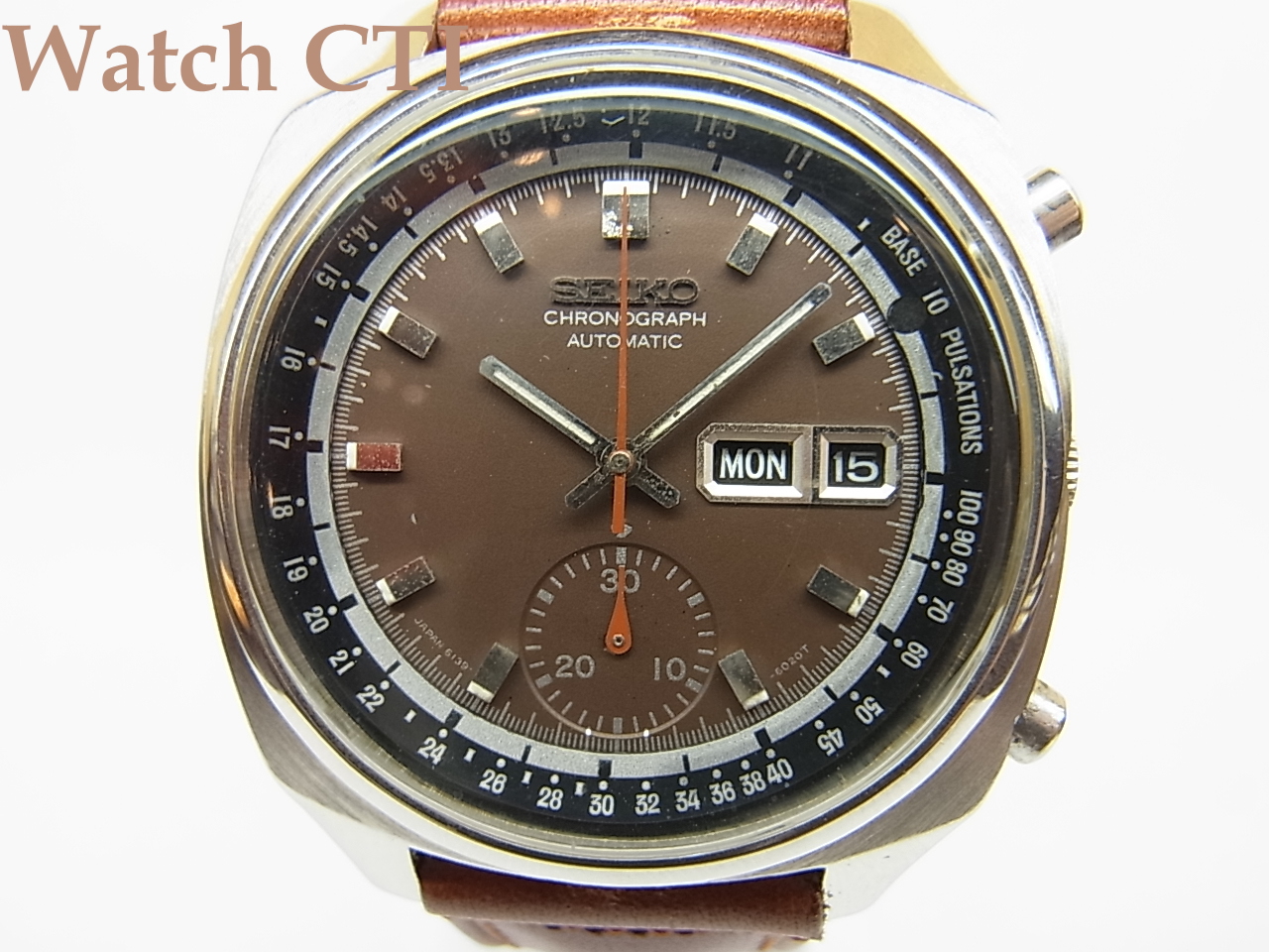 ☆輸出仕様の61クロノグラフですが、ケース形状もダイアル色も輸出専用品のようで、国内では未発売だったようです。ケースサイズも今っぽい大型40mmですし、ちょっと白の入った茶系の文字板はおしゃれですよ!