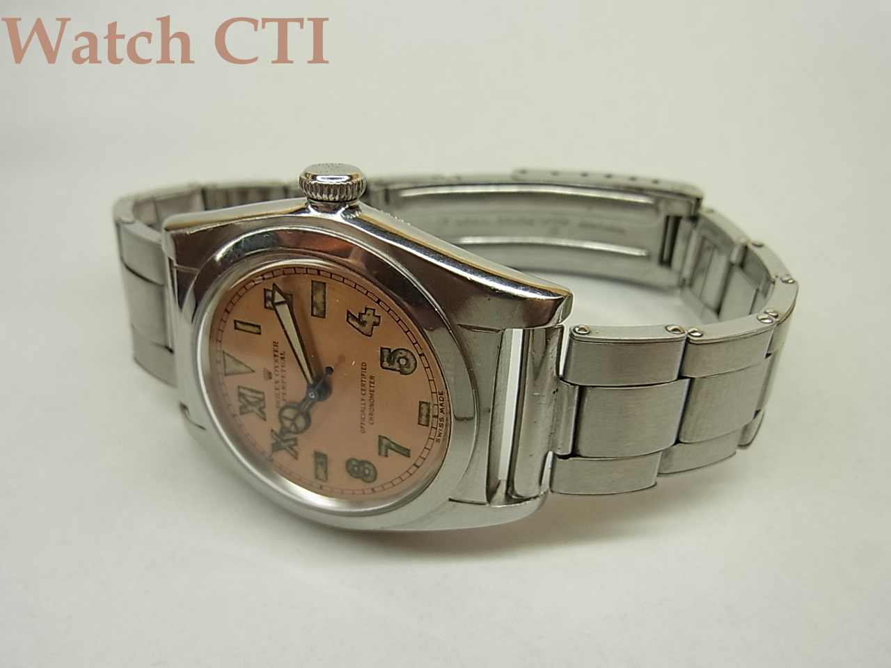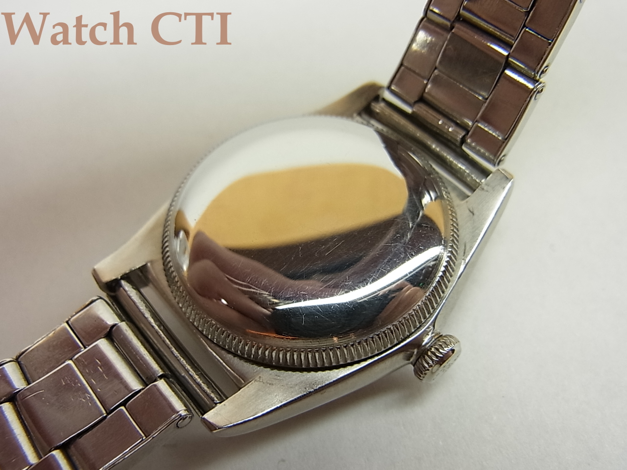 *40年代の発売当初のものではありませんが、50年代のリヴェットオイスター・エクステンションブレスが付属しており、腕時計全体の佇まいをよりヴィンテージな雰囲気にしております!やはりブレス付きは良いですね!