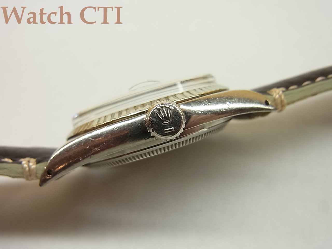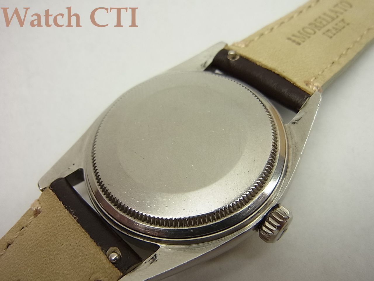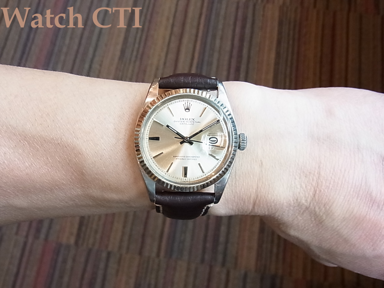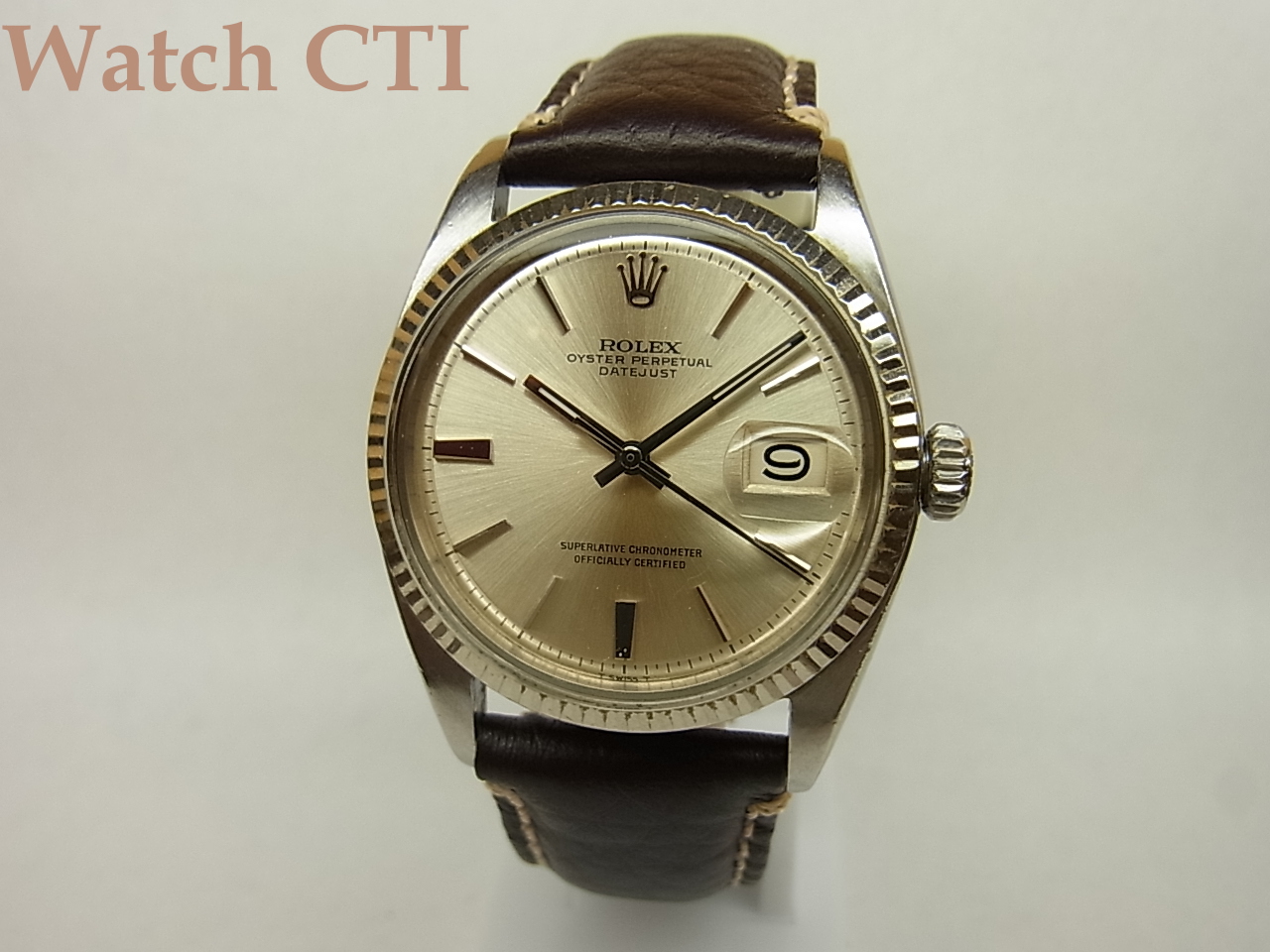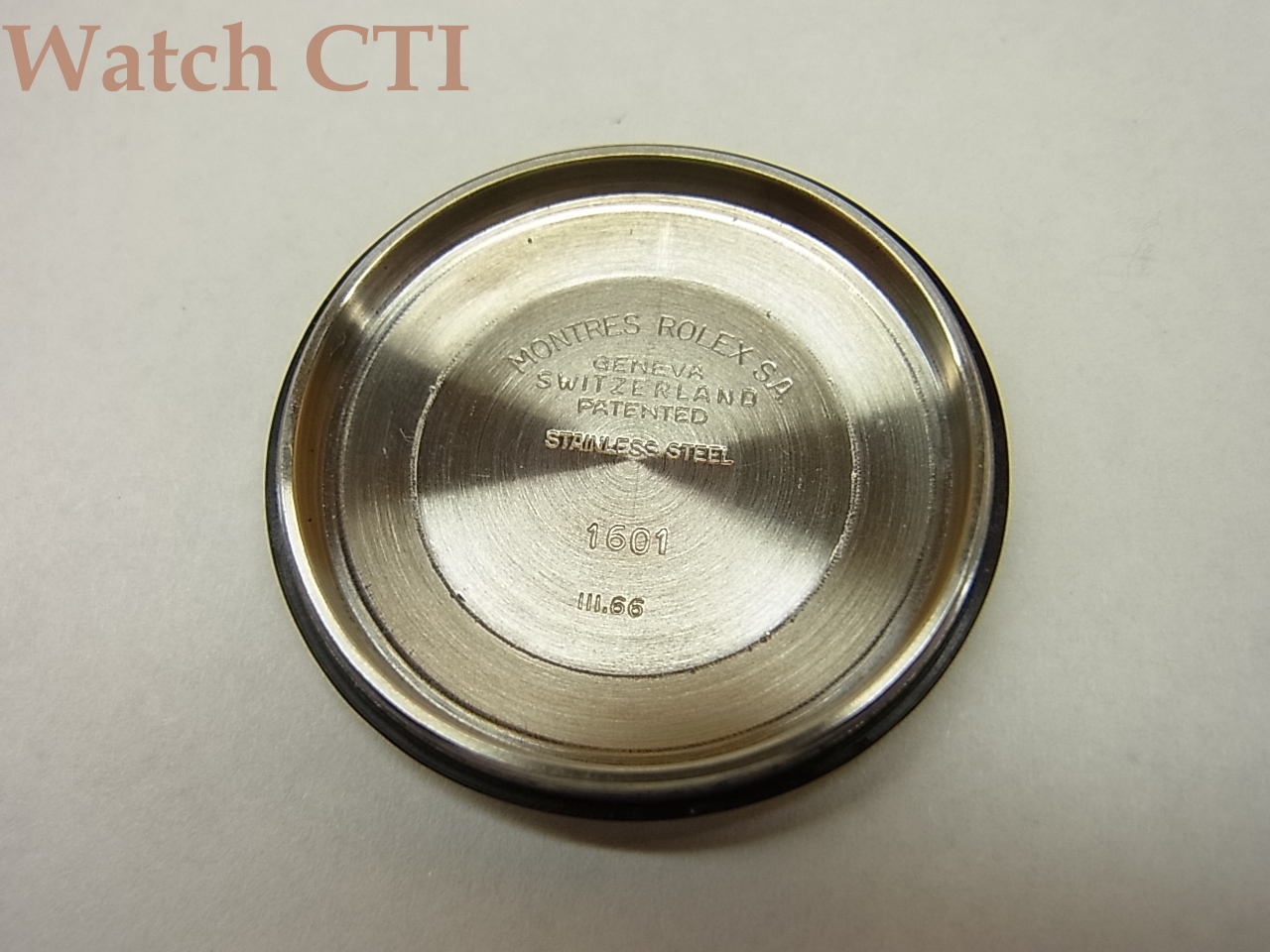 ずばり、ダイアルのインデックスです。よーくご覧になっていただきますと判るのですが、6・9時以外のアップライトインデックスの形状が、ものすご~く僅かながら、テイパーしてるのです。文字板の中央部側に向かって僅かに細くなって行っております。インデックスの形状は70年代以降の主流は最終モデルまでちょっと太めなバーインデックスになっていましたが、この現品は僅かなテイパー…..そして実は1601モデルの最初期50年代後期~60年代初頭にかけては見事な「くさび型」だったのです。つまるところ、この1966年の文字板はほぼ最後の「クサビ」インデックスと言えるでしょう。「微クサビ」なわけです。そしてこの極端に僅かながらのクサビインデックスの製造期間は極めて短かったと言えるのです。おそらくこの現品の製造年あたりの2年くらいじゃないでしょうかね….探したら出てきませんよ!僅かな違いが問題となるロレックスの諸モデルですから、今後ひょっとすると……??