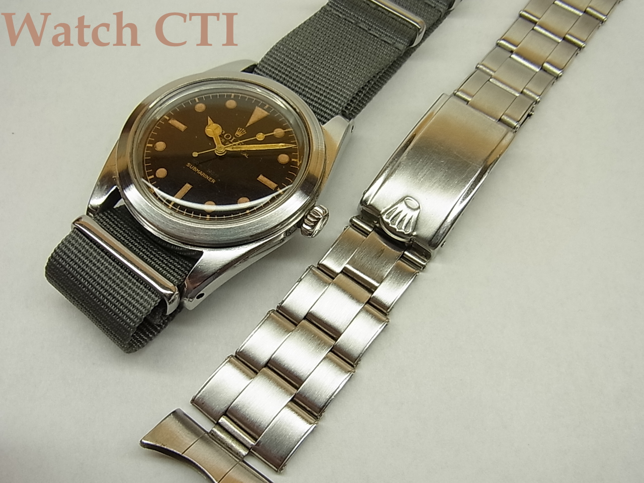画像ではNATOストラップですが、USロレックス製20mmリヴェットオイスターブレスが付属しております!この一本もレアな価値がありますよ!