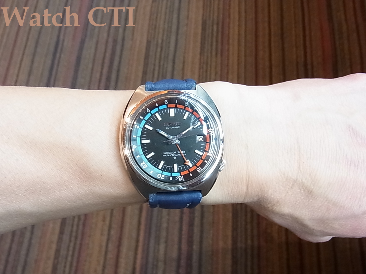 24時間表示インナーベゼルでローカルタイムの設定もできます。リューズを廻して操作しますがベゼルの動きが軽く動きます…..セットがずれ易いのは御愛嬌ですかね。リューズロック機構であれば良いのですが…..。