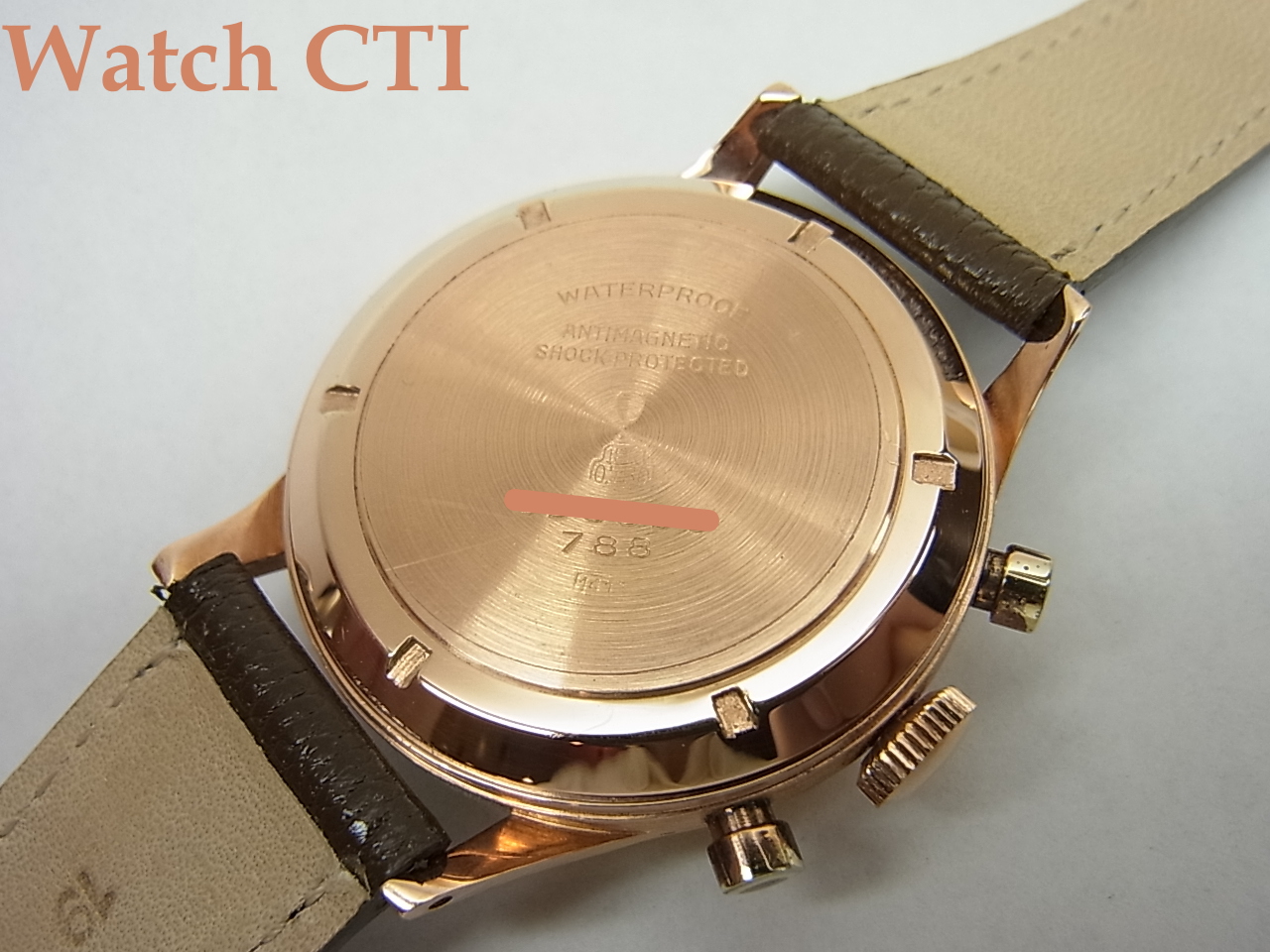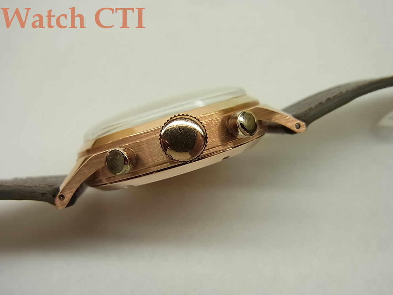 その3レジスタークロノグラフC.178をスクリューバックケースに搭載しているだけでも中々お目にかかれませんが、現品は何と18金ピンクゴールド製なのです!しかも,ケース・ダイアル・ムーブメントのどれもが状態はミント+….これは中々出ませんよ!