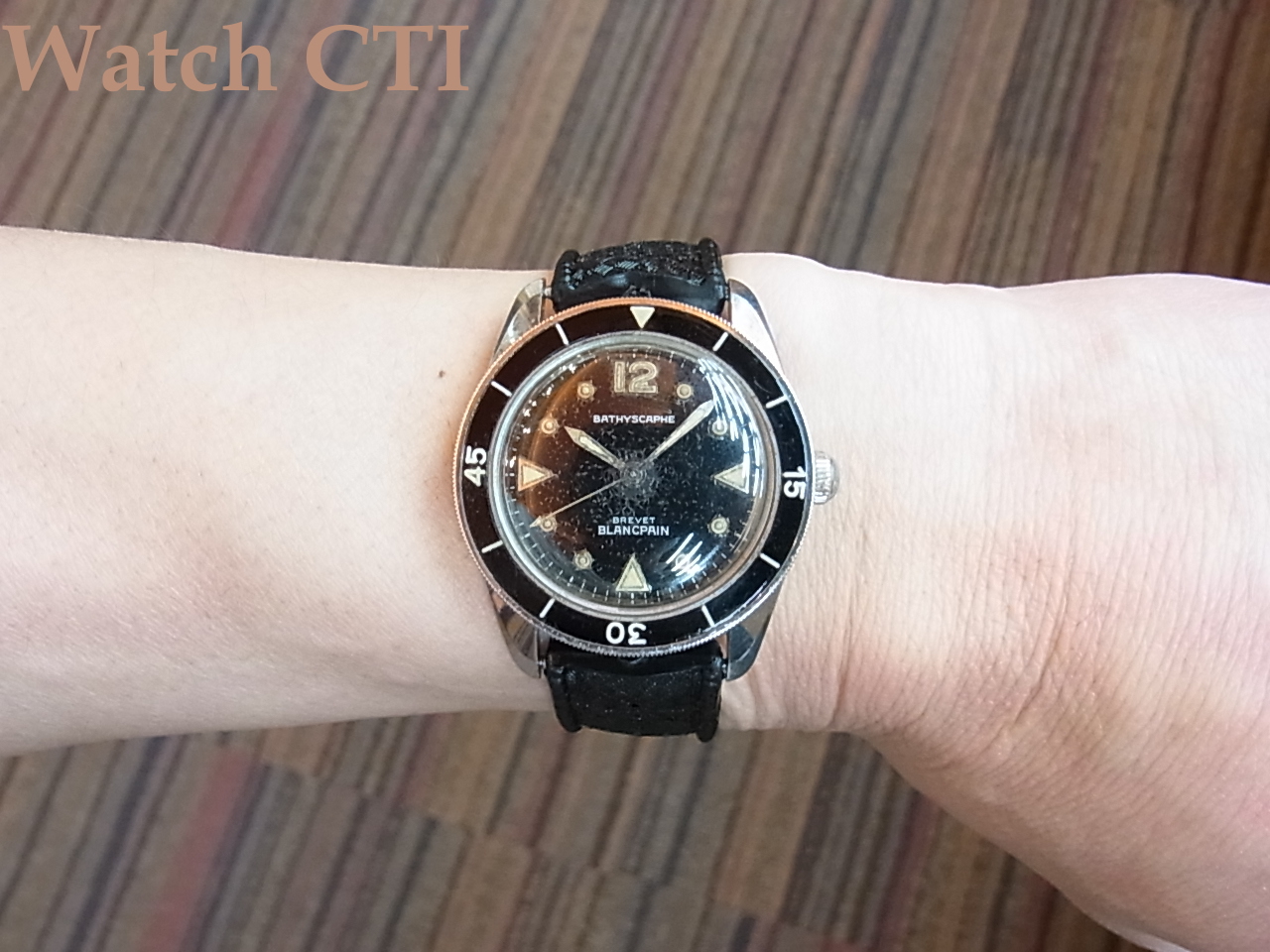 「バチスカーフ」のネーミングは1953年のデビューに遡りますが、この現品の製造年自体は少し後年になるでしょうが、当時すでにこのようなミッドサイズがあったことはちょっとした驚きです….
