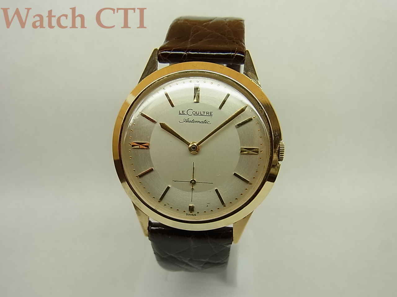 が、この現品には未だそのメーカー銘刻印が見られません。LeCoultre銘のみなんですね!この点がアメリカ販売の初期ものとの判断に繋がります。そして、その後のこってりデコライズされていくケースや文字板のデザインと比してよりヨーロッパ仕様モデルのいかにもJLってイメージに近いケース・ダイアルデザインである点も中々楽しませてくれる点でもありますね!長短針のテイパーバトン型もいかにもですね!おススメの一本です!