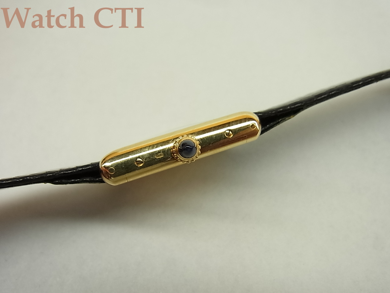 18金製のDバックルも付属しますが、後年のようなベルトの長さを調整する方式のものでなくてサイズが固定のものしかつかないタイプです。(年式が古い証拠でもありますね)ですので、このタンクをDバックルで使いたい方は、申し訳ございませんがこのDバックルをお持ちになり、Cartierブティックで純正品をお買い求めください。サイズを選べます!