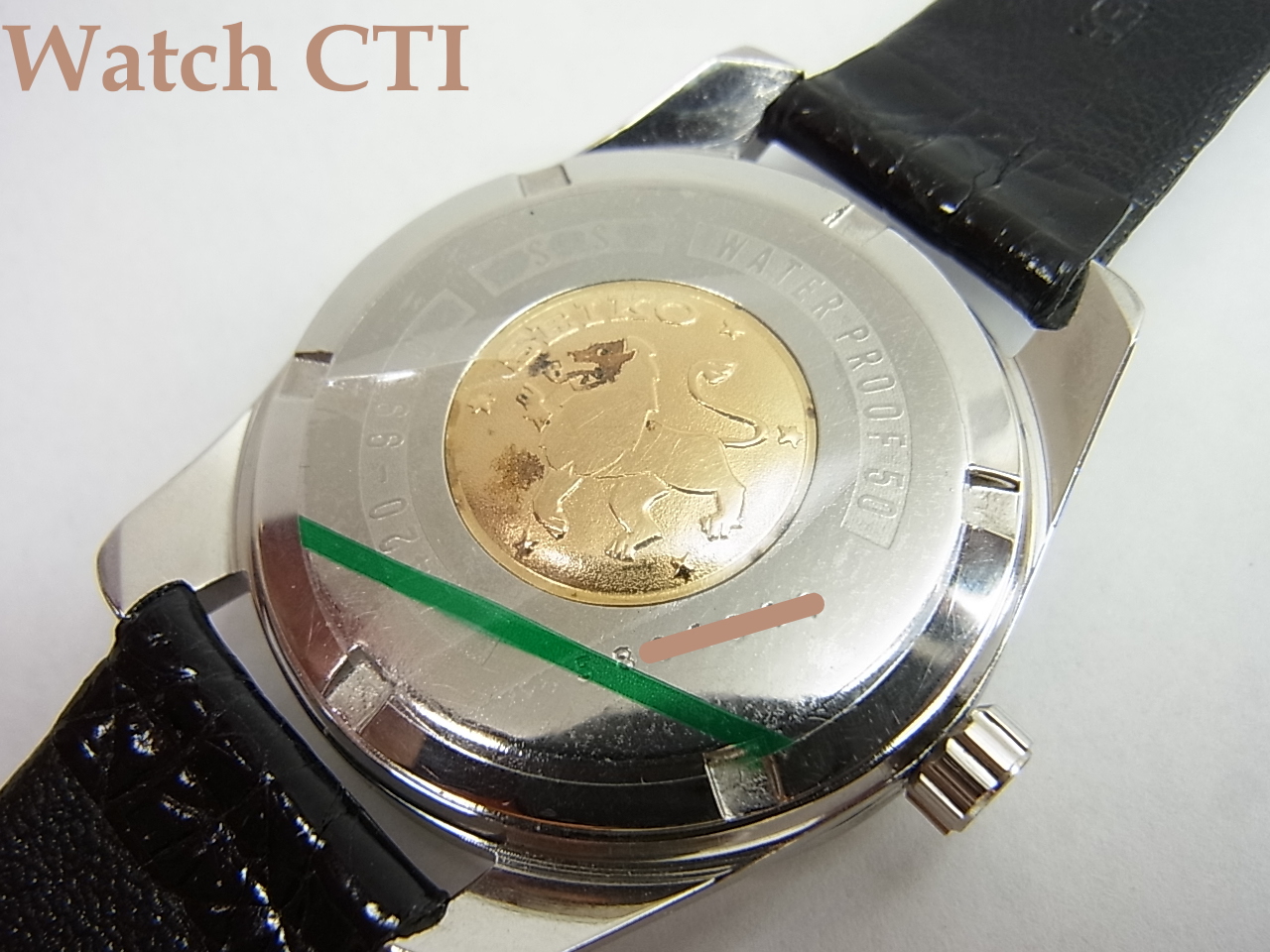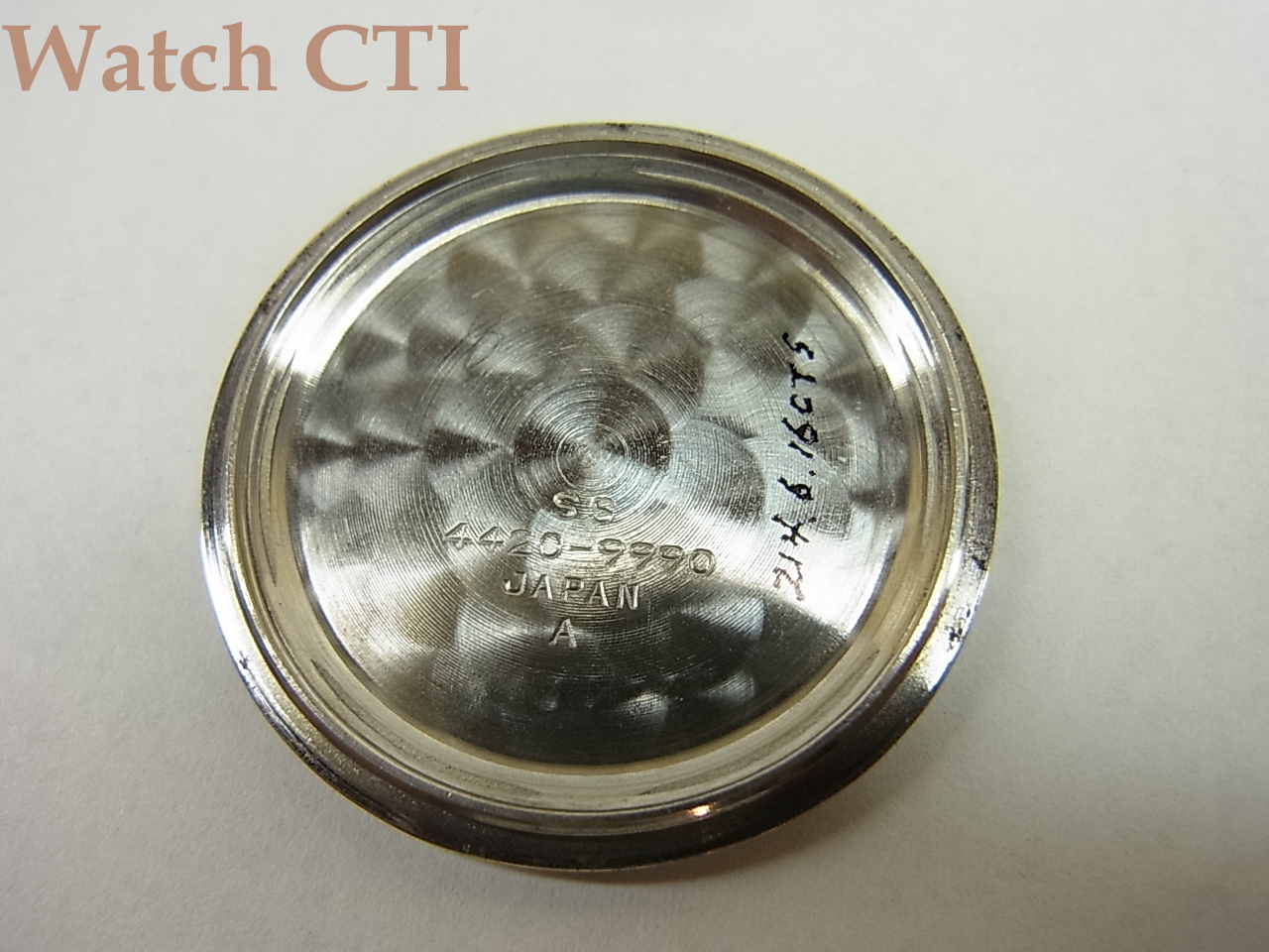 後期型は、文字板のクロノメーター表示がブロック体でプリントされているもので、前期型が筆記体となり一見して違いが判ります。その他ケースバックのレター類の表示方法もかなり違います。