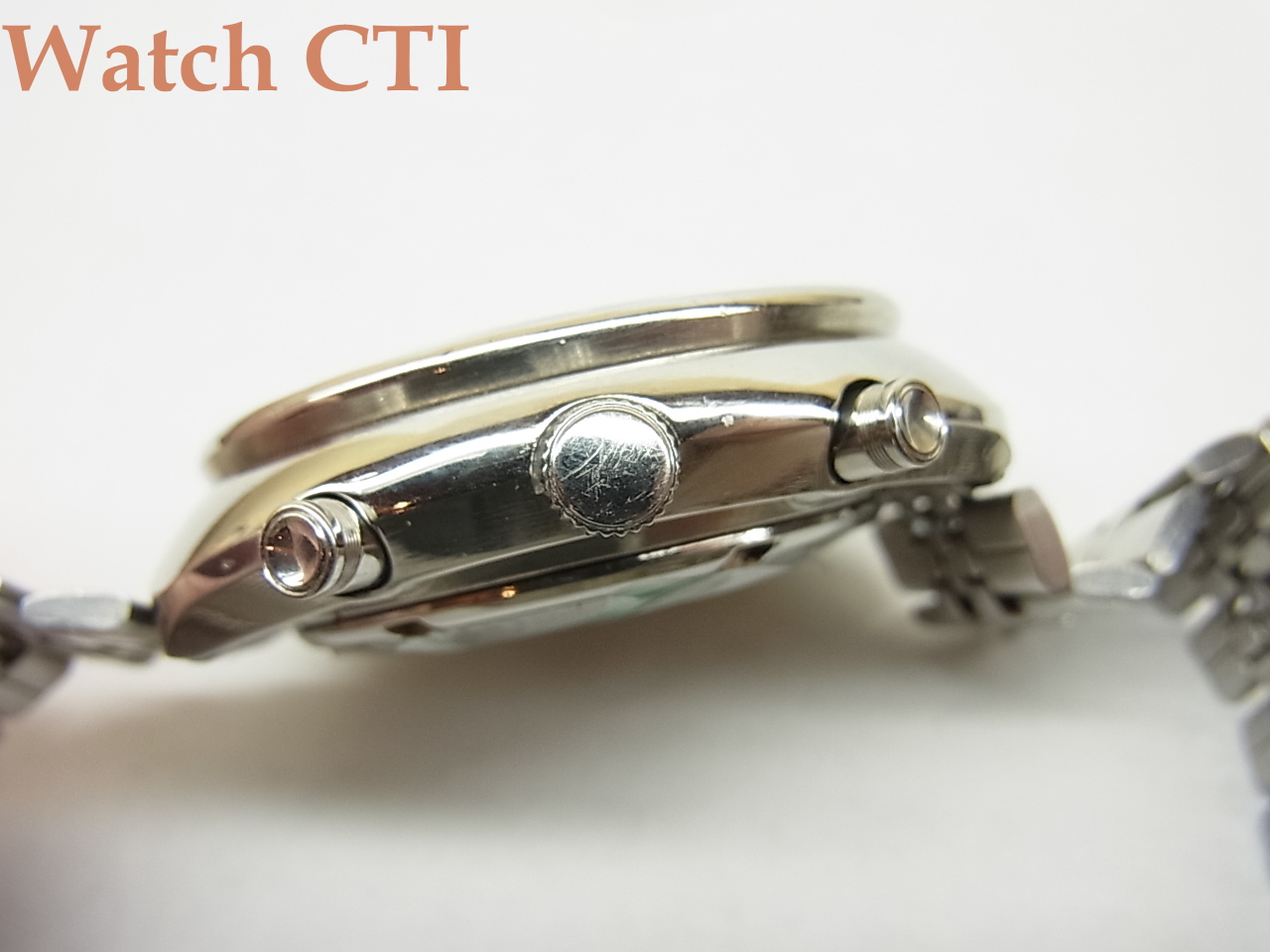 本来は、付属ブレスレットのバックル部分にもその銘が入るのですが、本体重量が重すぎたところに華奢なブレスがおごられたために多くの個体でブレスが破損し、淘汰されてしまっております….。