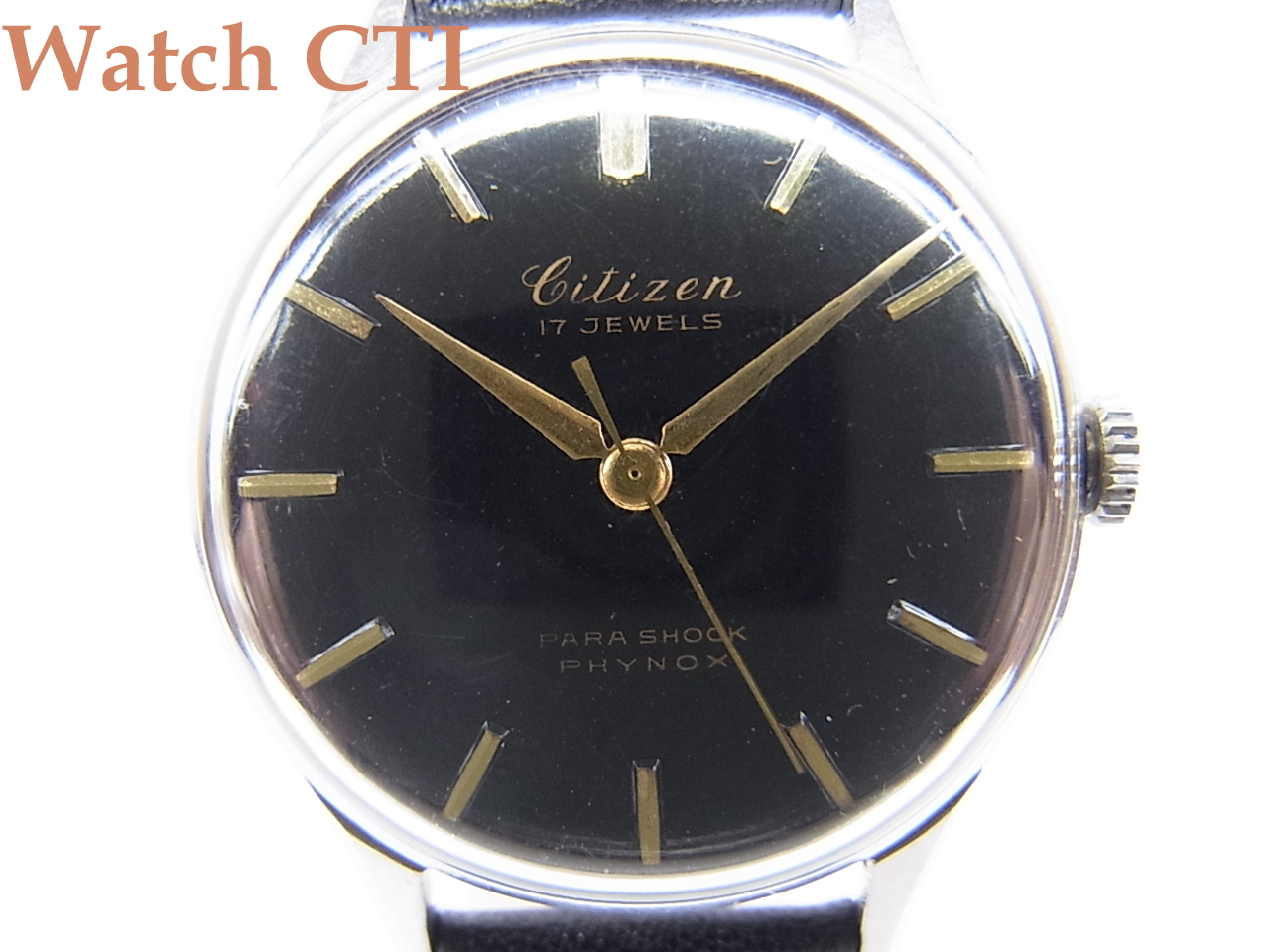 ☆大変綺麗なブラックダイヤルですが、17石モデルでパラショック付機械用の文字板が装着されたものとなります。(現品には15石・非耐震の機械が搭載されております)