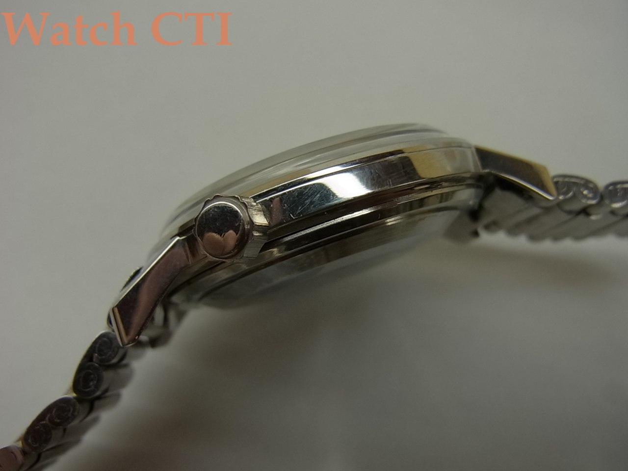*現品はケース・風防・ブレスレット・文字板にデッドストックパーツを組み込んでいます。(ひょっとすると機械も元々デッドストックのままであったかもしれませんが、明らかに各ねじ類に手を入れた痕跡が見られるため機械はUSED扱いとします)商品タグもついておりますので時計店で眠っていた棚卸品が流通したものに違いないとは思います。