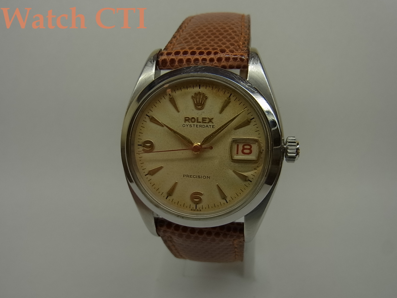 *この後すぐに3代目REF.6694となるオイスターデイトですが、この50年代半ばの品は、典型的50’Sモデルの意匠がそこかしこにあり、とっても楽しめるモデルとなっております。たとえば、ROLEXのアップライトロゴがゴチック系である事、長短針がアルファ型である事、インデックスにアラビックと楔のミックスが使われている事…..等々