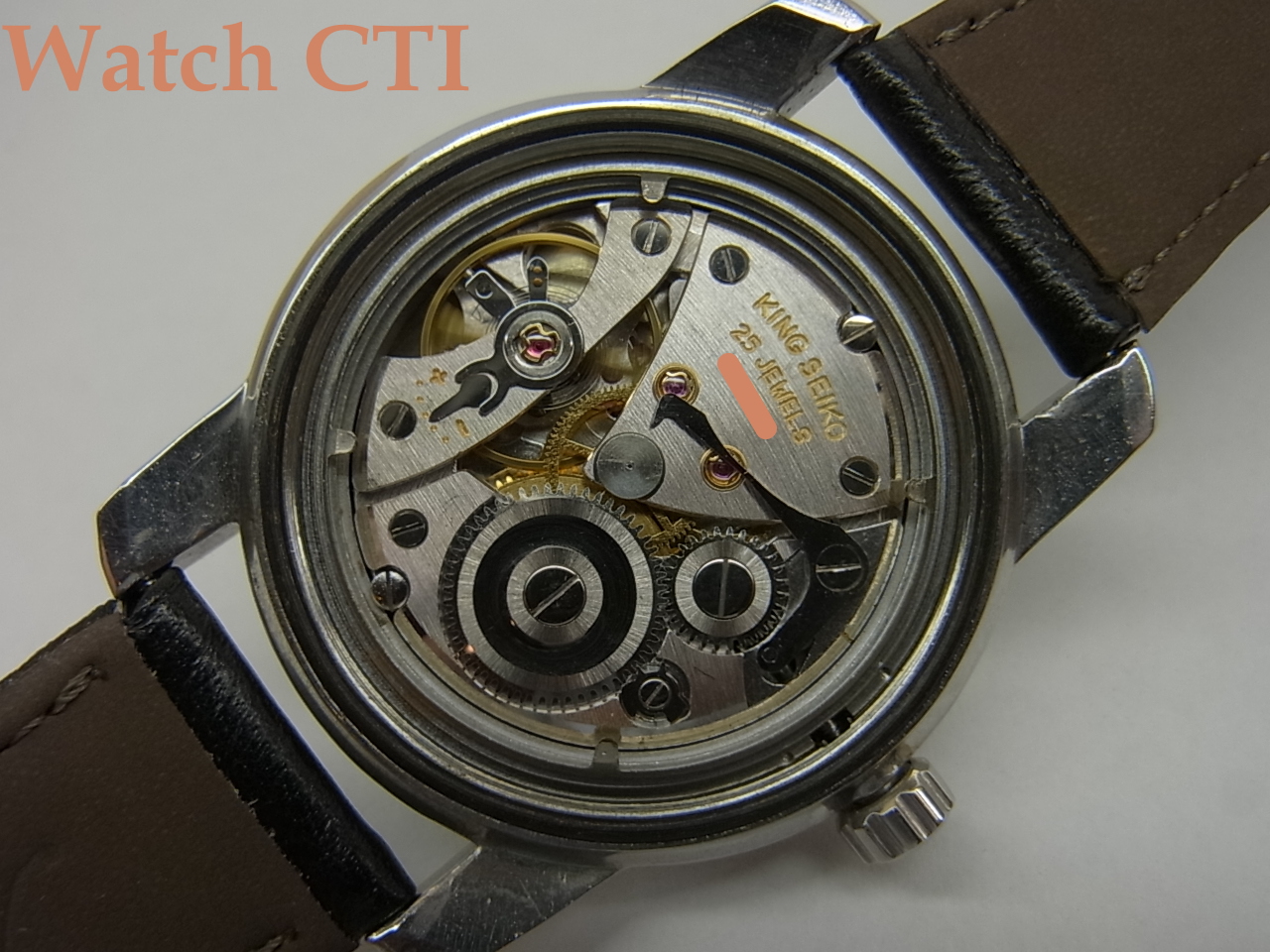 ◎セカンドモデルのKSには大きく分けて3型ありますが、このカレンダーなしスクリューバック仕様が最もごつい感じで押し出しのあるモデルとなります。他の機種は、スナップバックでカレンダーなし、とスクリューバックのカレンダー付(4402A)のモデルバリエーションでした。11.5型クロノスをベースにチューンされたロービートの名機です。スクリューバックケースのおかげで機械も美しく保たれております。お勧めです!!!