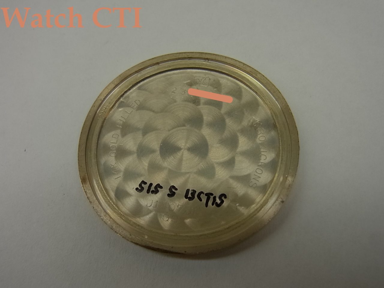 間違いなく未使用品でしたが、棚卸されてからの保管がぞんざいであったためでしょうか付属品も一切なく、ユーズド品とは一線を画するシャープさは保っておりますが、新品時点での雰囲気とは少々違う、未使用で経年したなりの外装状態ではあります。ケースバックには傷防止のために施された透明コーティングがそこそこ残っておりますので来歴の一端がうかがい知れると思います。