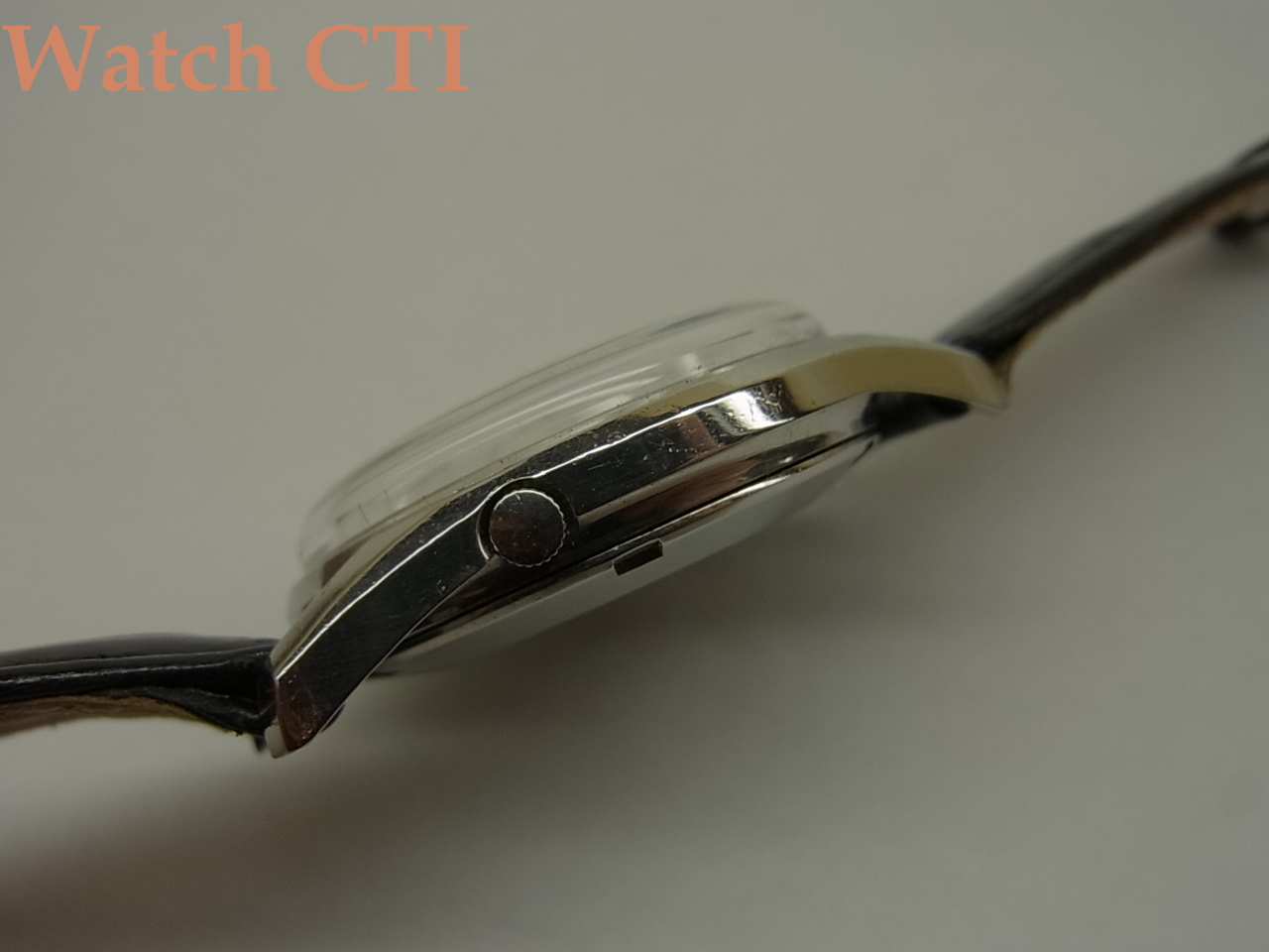 *ケース全体に軽めのポリッシュが入っています。バフ等の機械でしあげたものではないようで、きつい「ダレ」は感じません。文字板はインデックスや針も含めて極々自然な経年変化のみで大きな瑕疵はありません。機械はOHしたてで好調です。