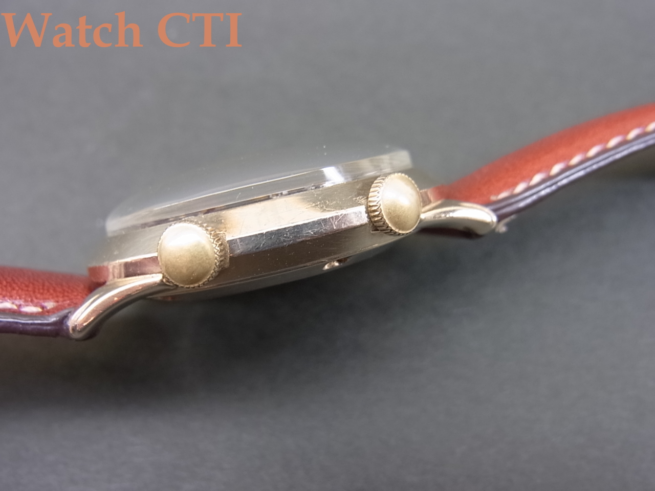 *全体の程度は程よく使い込まれたUSED品で、ヴィンテージテイストを醸し出すのに一役買っている使い込み加減で好ましいものではないでしょうか?リューズの金メッキはすべて剥離してしまって真鍮地が出ておりますが色的には気になりませんかと….。またリューズ自体はもう少し薄い形状のものがついた同一機種も確認しておりますが現品同様の出べそ型のものの方が多いように感じます。どちらがオリジナルか?というより仕様違いかもしれませんのでご承知おきください。