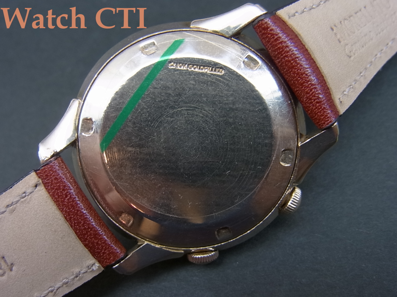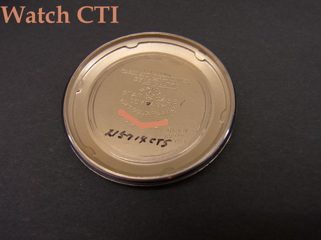 *現品のケースもズバリアメリカ製で、懐中時計の時代からアメリカンメイドの各社にケースを供給していた名門、STAR WATCH CASE COMPANY(スター・ウオッチ・ケース・カンパニー)製であることがケースバック内側の画像からも見て取れますね!10金の金張ってアタリが、如何にもアメリカンウオッチです…。ヨーロッパ販売モデルにはどういうわけかほとんど10金張りとか14金張ってのは見かけませんよね!
