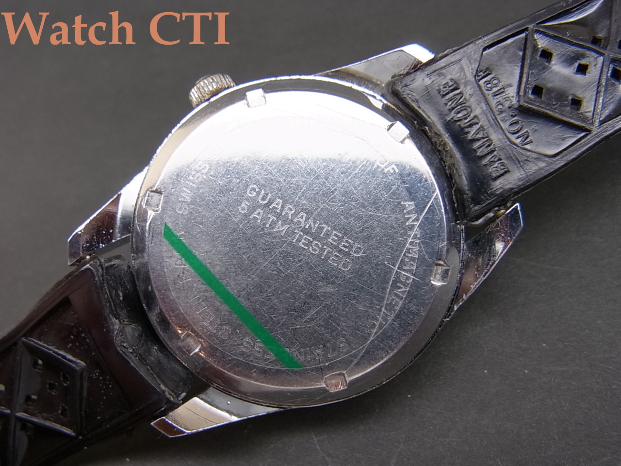 何より「5気圧防水をテスト済みです」って5ATM TESTEDの赤文字!ちゃんとスクリューバックですが……..ああ、B級品です。(いやC級かもしれませぬ)