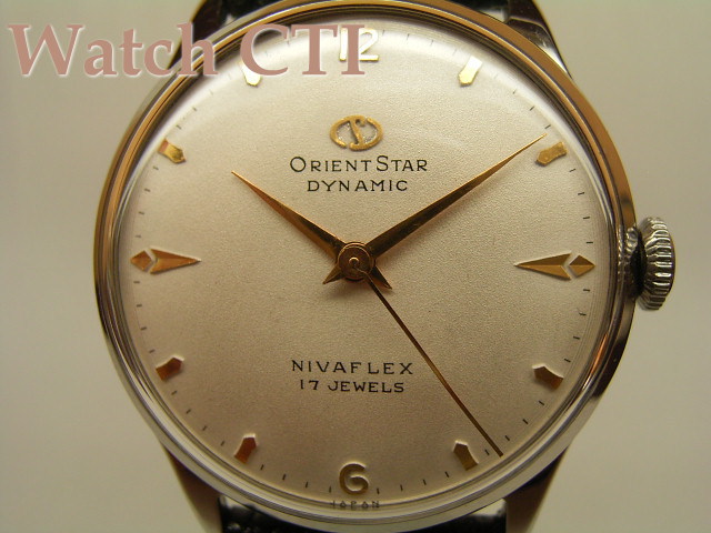 国産腕時計メーカーでは唯一過去の販売機種から機械式ラインナップを切らさなかったメーカーがオリエントです。そのオリエントの初期看板モデルがこの「スター」。いかにもアンティークという風貌と30mmというサイズが時代を物語りますが、最近は復刻モデルも発売されていて、やはりオリエントにはなくてはならないモデルなのです!とてもリーズナブルな現品ですが、ミントな状態で「当時のオリジナル」を楽しめます。「ゼンマイ式時計をまず一本」という方や女性にもお勧めです!