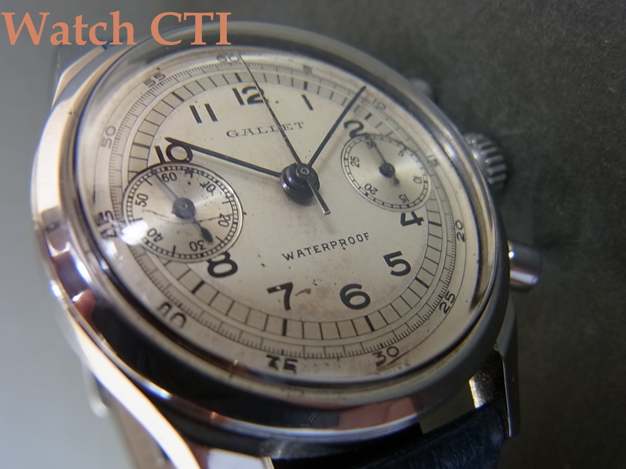 ☆ギャレット社のクロノグラフでしばしば見られる防水タイプケースのモデルです。