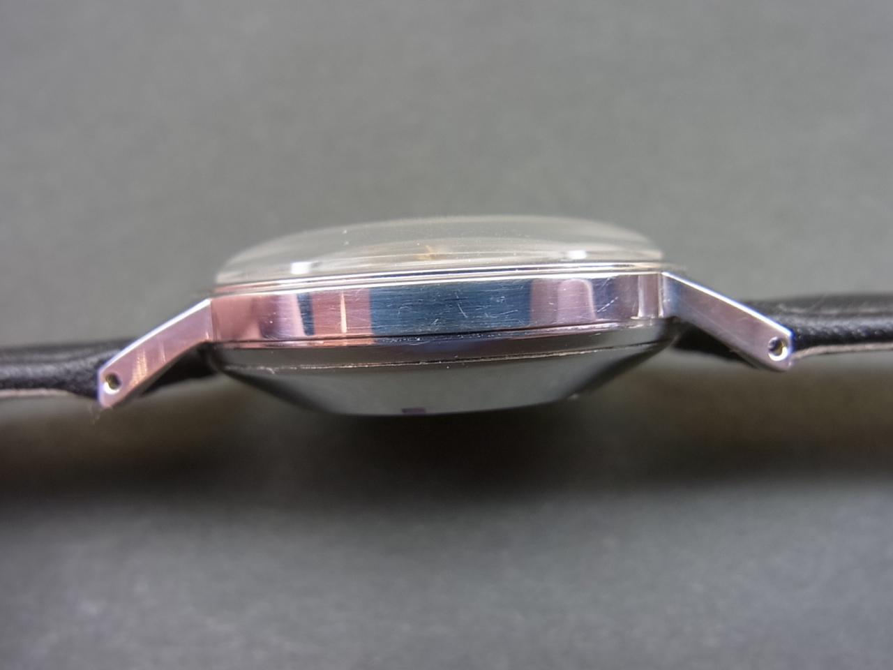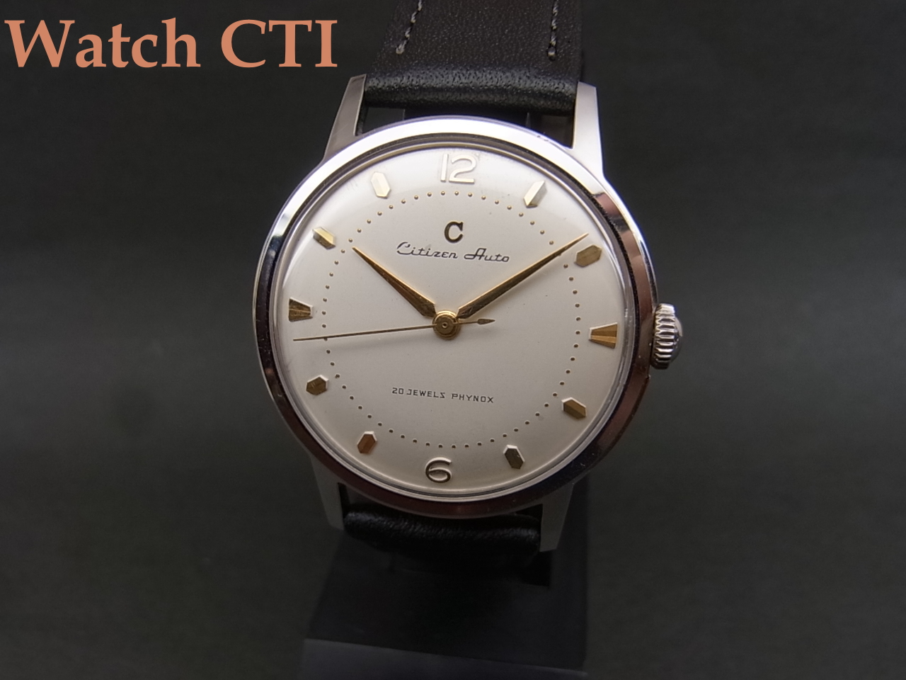 デッドストックの未使用品で間違いないと思いますが、文字板のCitizen銘プリントの「C」位置にこすれ、2個目の「i」の位置に薄いシミが見られます。それ以外は外装、文字板、機械とすべてが未使用を感じさせるに十分な状態を保っております!!!!シチズン製バブルバックといった感じの機械で大変味がありますね!