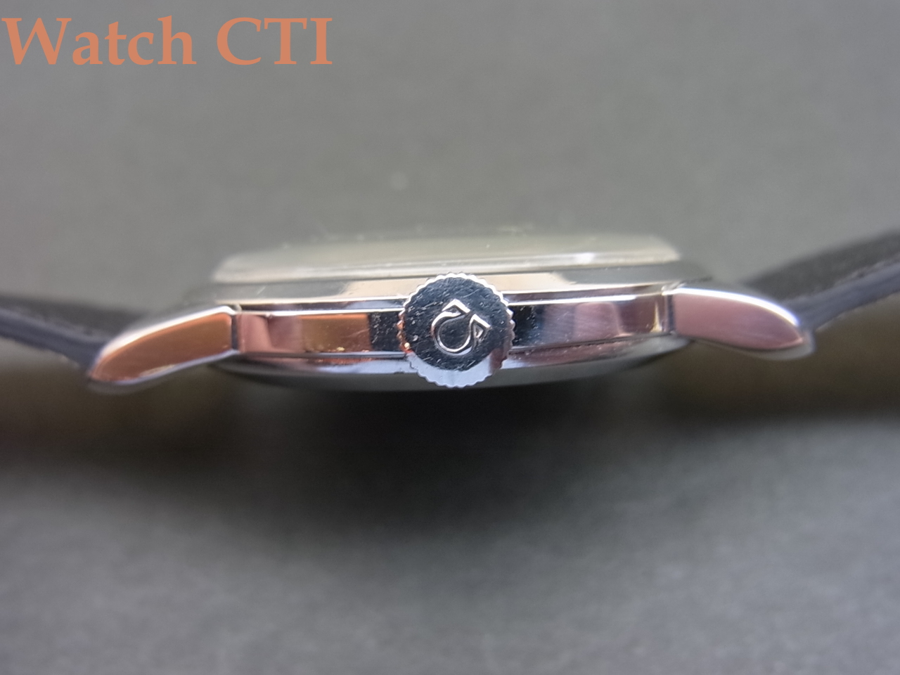 *状態ですが、ケースは全体に極々軽めなポリッシュが入っているようですが、シェイプを崩すこともなく、太目なラグもしっかりエッジを保って残っておりますね。ダイアルもわずかなシミが外周寄りに見られる箇所もありますが、画像でも気づかない程度かと思います。機械もオーバーホールしたてで好調です。ベルトは最近当社でよく装着しているベルギーLIC社のマドラス(山羊)素材でこの年代のモデルにはベストマッチ!!残念ながらオメガ尾錠純正はついておりません。