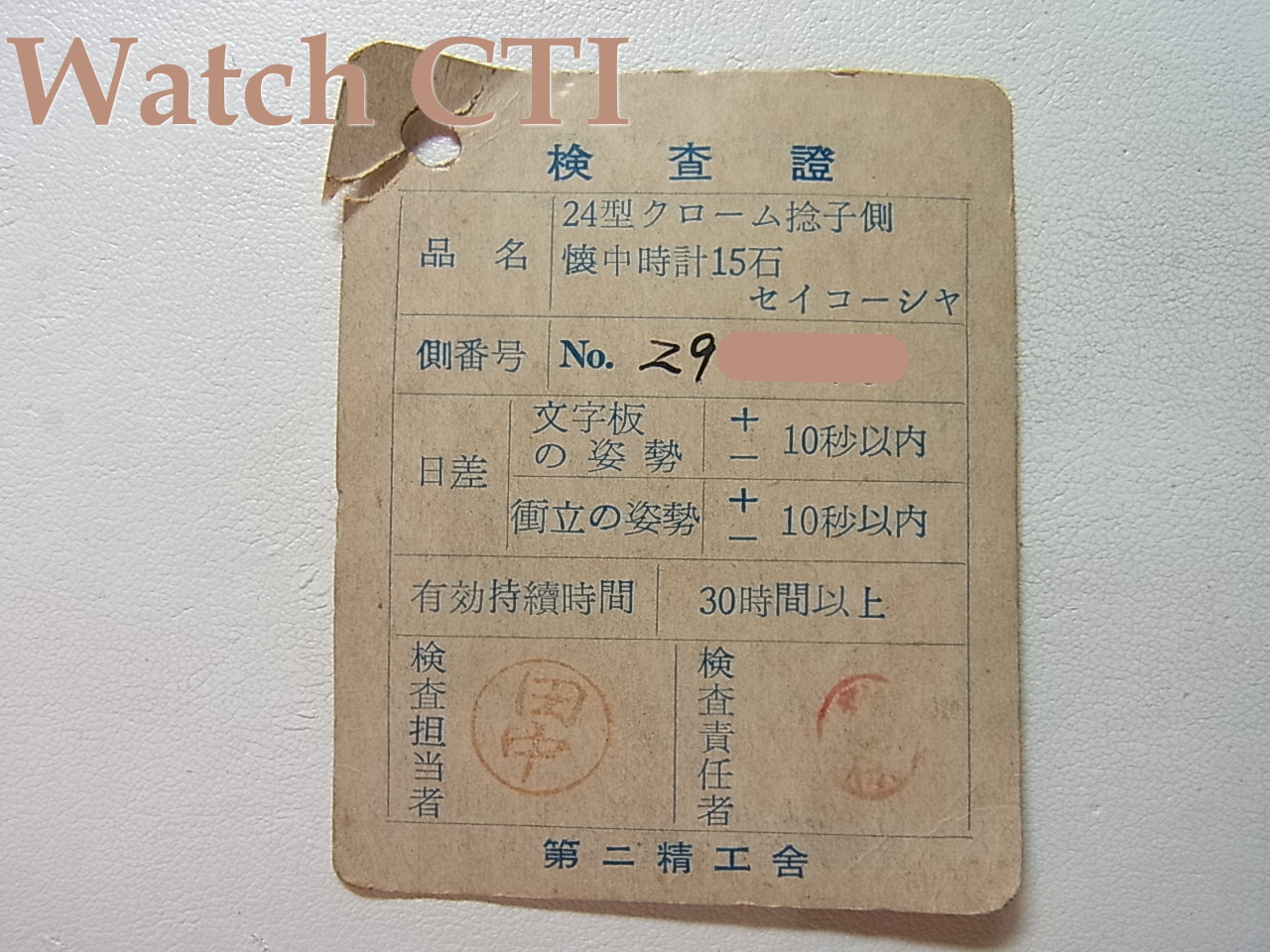 この24型がSEIKOから供給されていたのです。精度の良さをアピールするために現品にも添付されていますが、