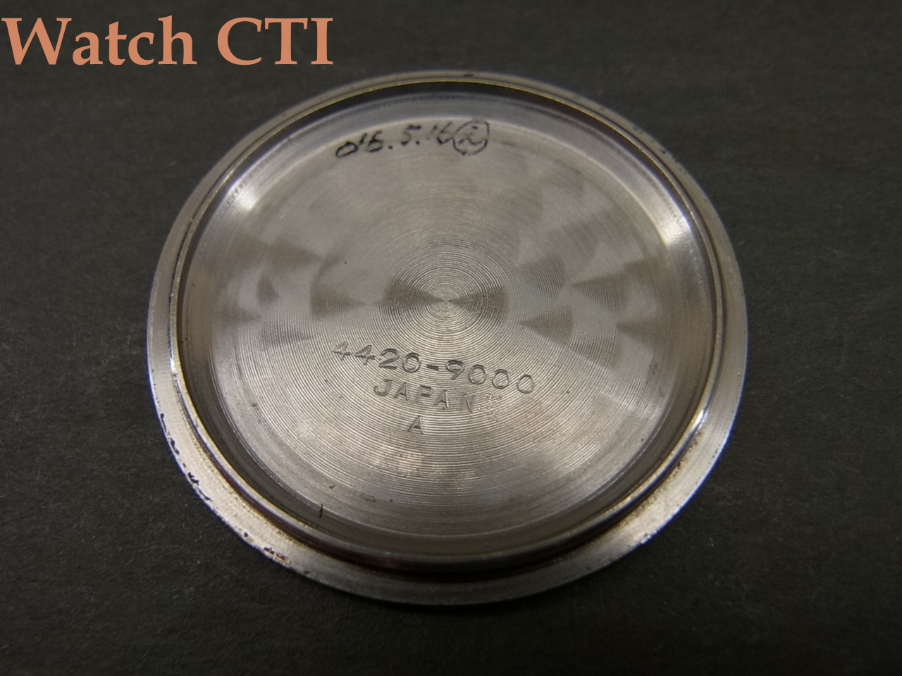 ケースバックのメダリオンもベースの梨地目が白っぽく保たれてますね。使い込んだり磨き込んだものはツルツルしてます。はい。