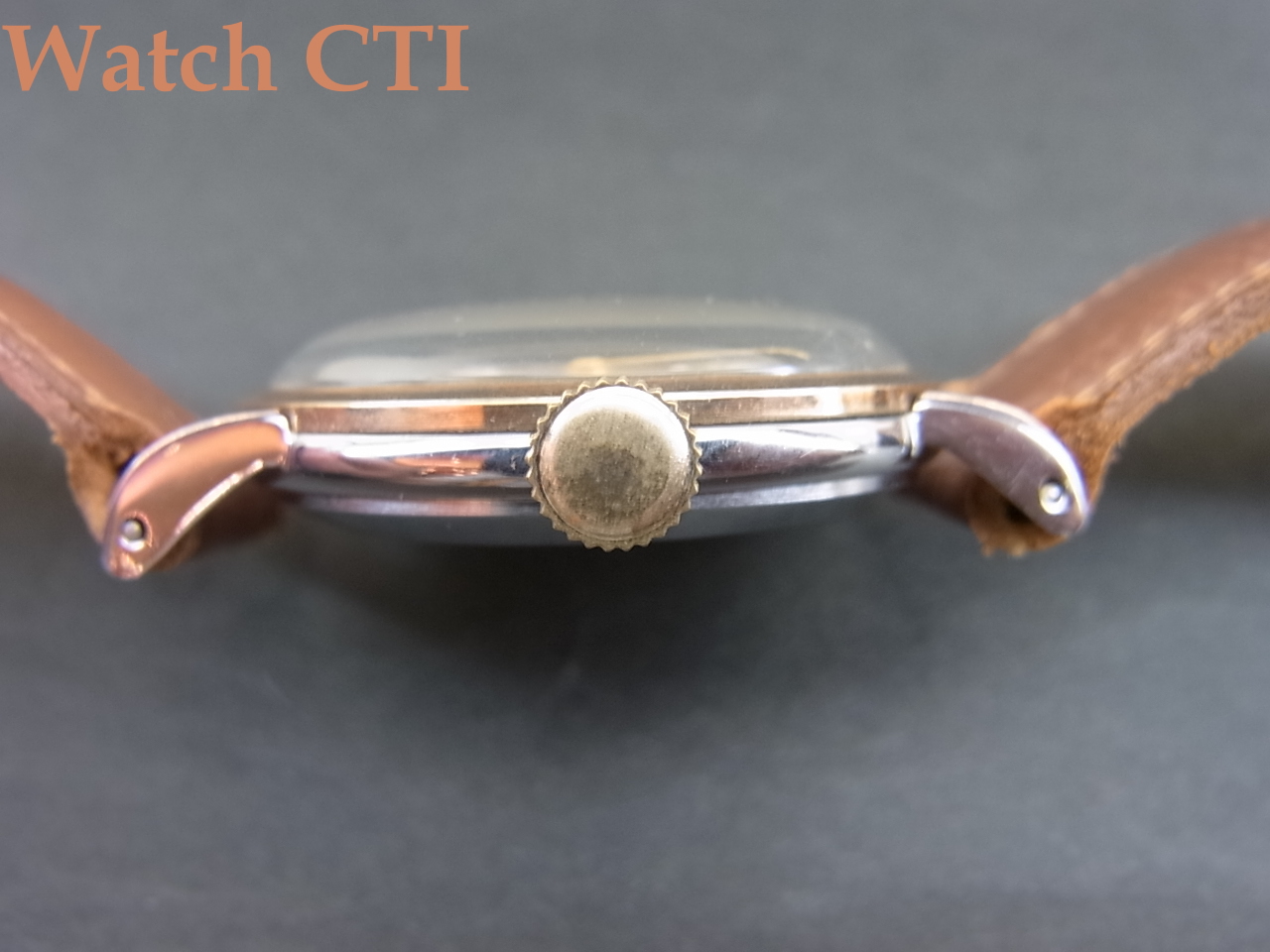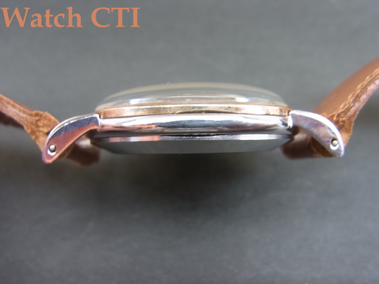 但し、ご承知の通りですが、「新品」ではありません。エンドユーザーに使用されて来なかったという来歴であり、永らく棚卸され保管されてきた過程での瑕疵はわずかですが見られすのでご理解ください。ベルトもおそらく当時の時計店で装着したものがそのままのように思えます。まだ、当時はメーカーがベルトを装着した完成製品として販売店に卸しておりませんでしたので………。