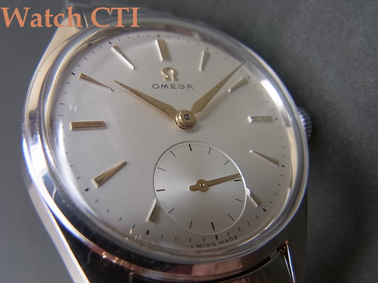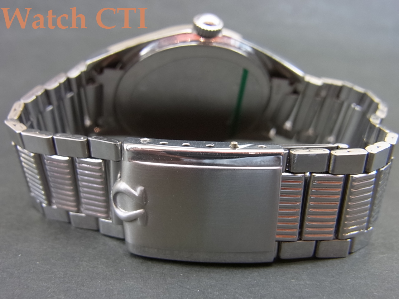 *特徴的なショートバックル付のオメガ純正キャタピラブレスは中央の駒にリブの入ったこれまた特徴的なブレスで、これ自体でも相当な価値がございます!そこに当時としての防水ケースに綺麗なストックダイヤルですから、実用使いに純正ブレス付で30ミリキャリバーを!という方には特におすすめいたします。尚、蛇足ですが、もし皆様がランチェロダイヤルとアロー系夜光針を入手されたならば、、、、、それをここに装着すれば軽く市価1xx万円オーバーの時計となってしまいます…….!!!!