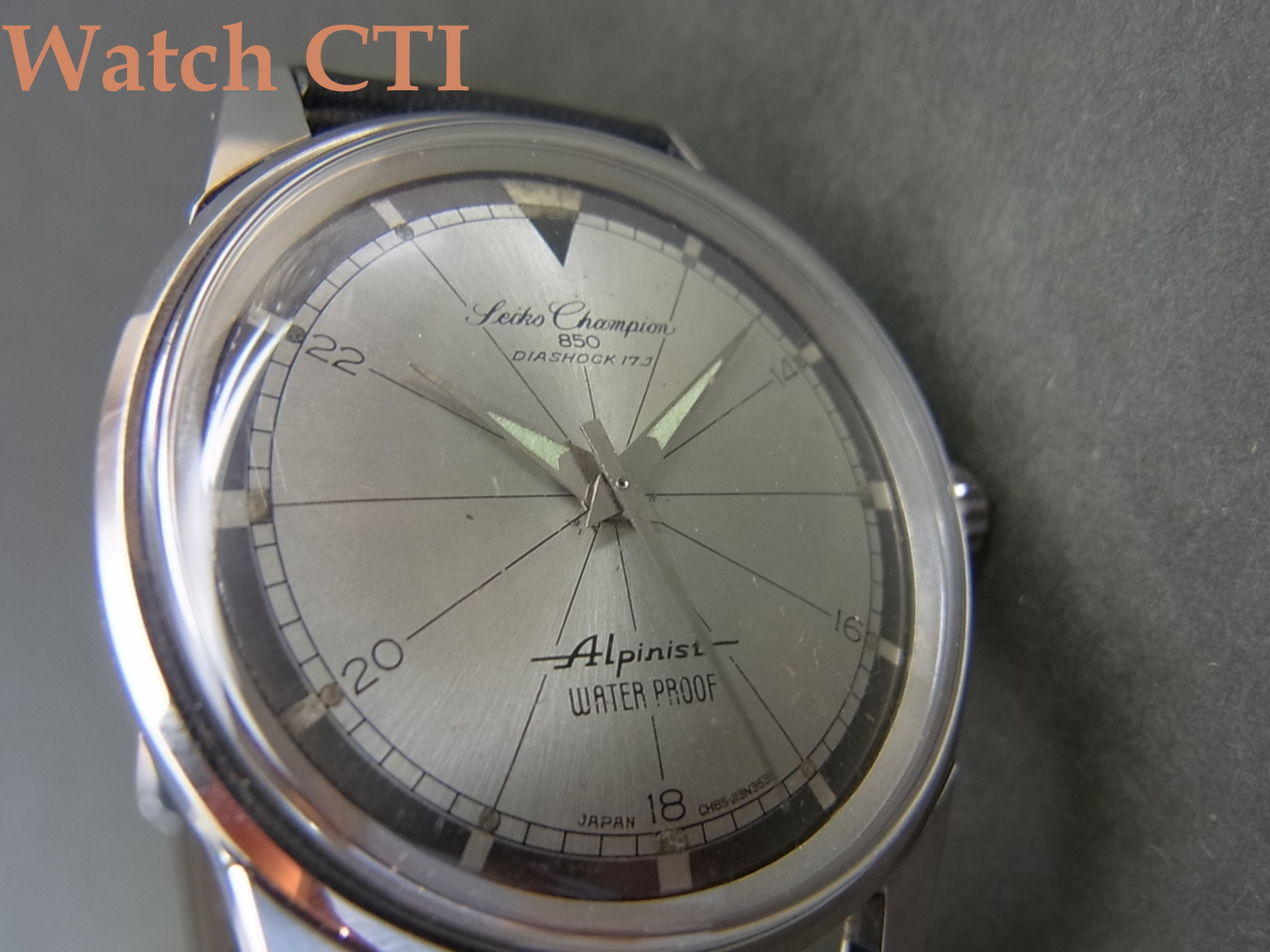 *現品には秒針の先端に夜光が付いておりませんが、過去に全く同一デザインの秒針がついた当モデルを何本か確認しておりますので、この仕様があったのかとも思います、が、後年の交換用純正秒針なのかもしれません。詳細はデータ不足で不明です悪しからず!