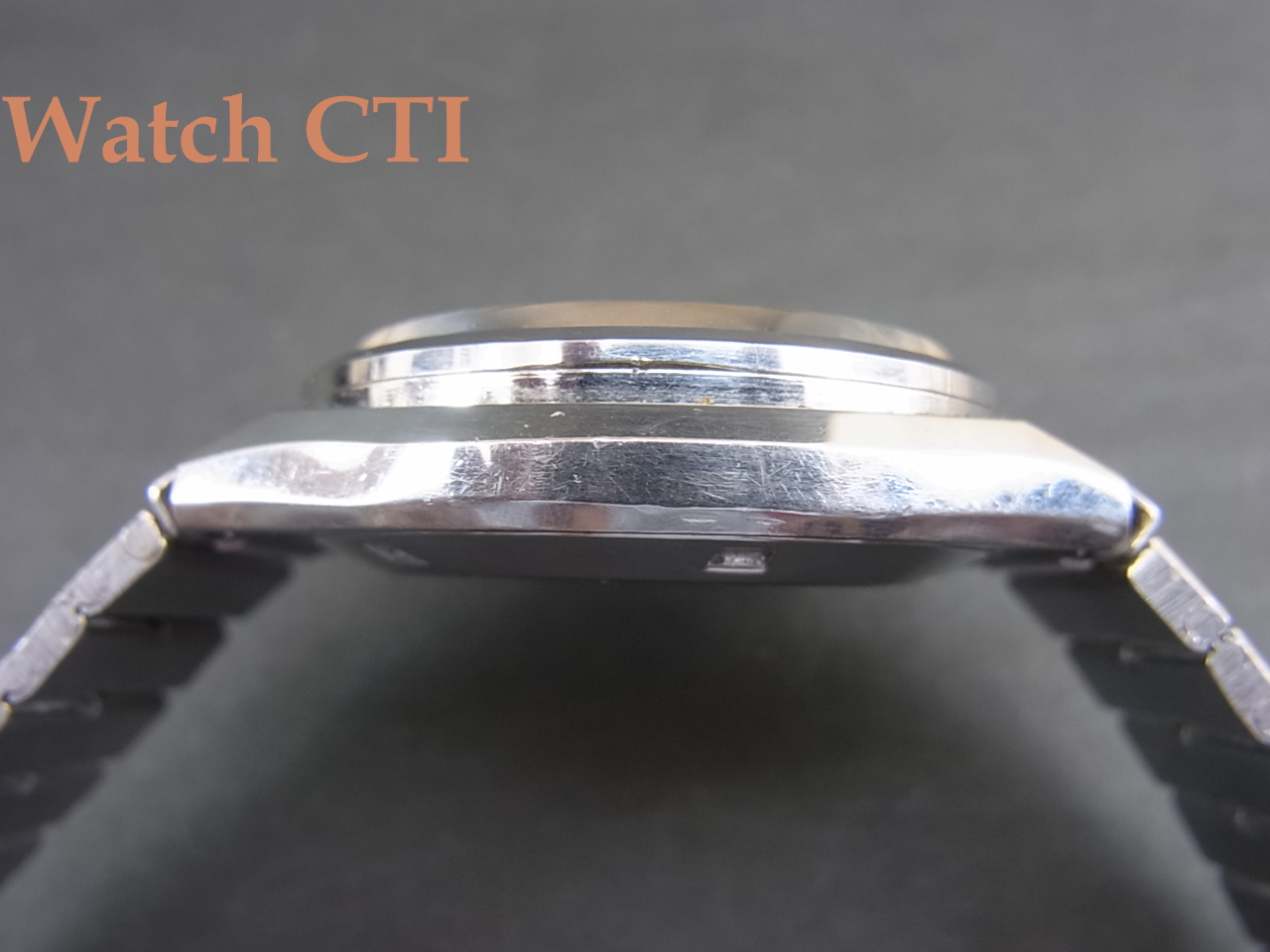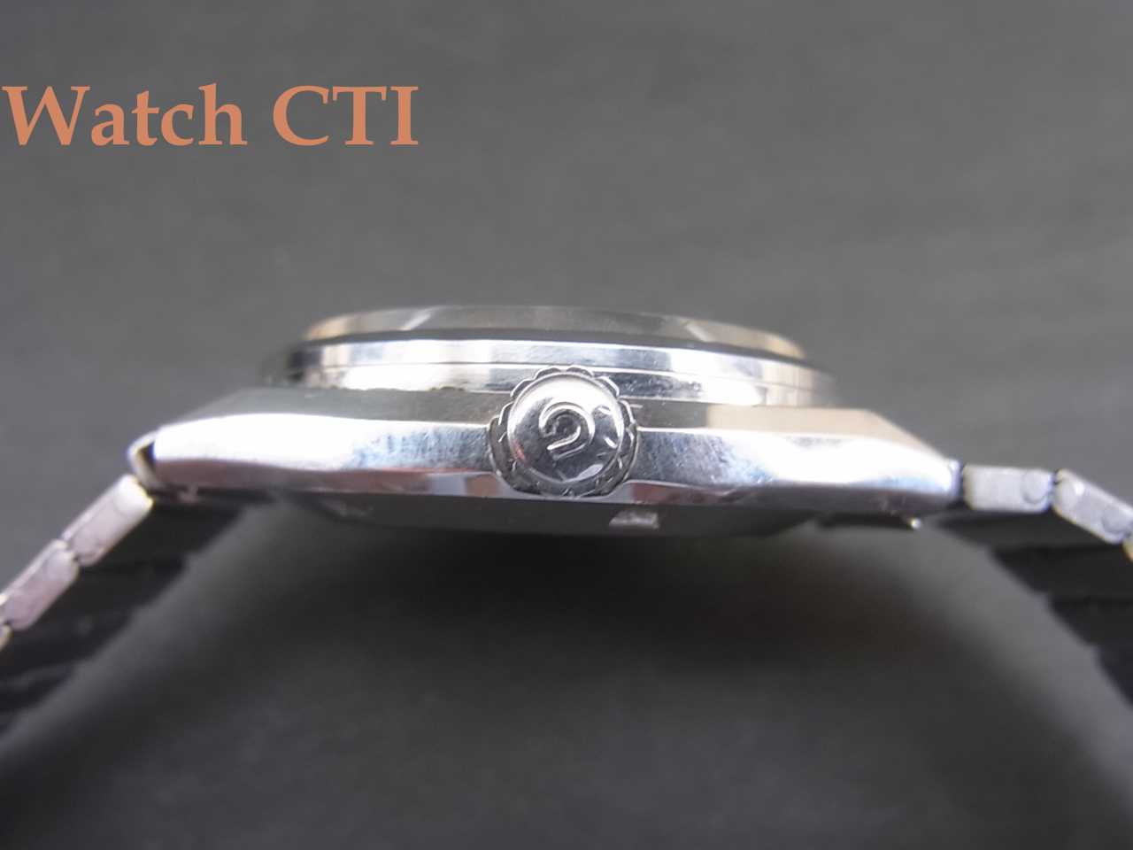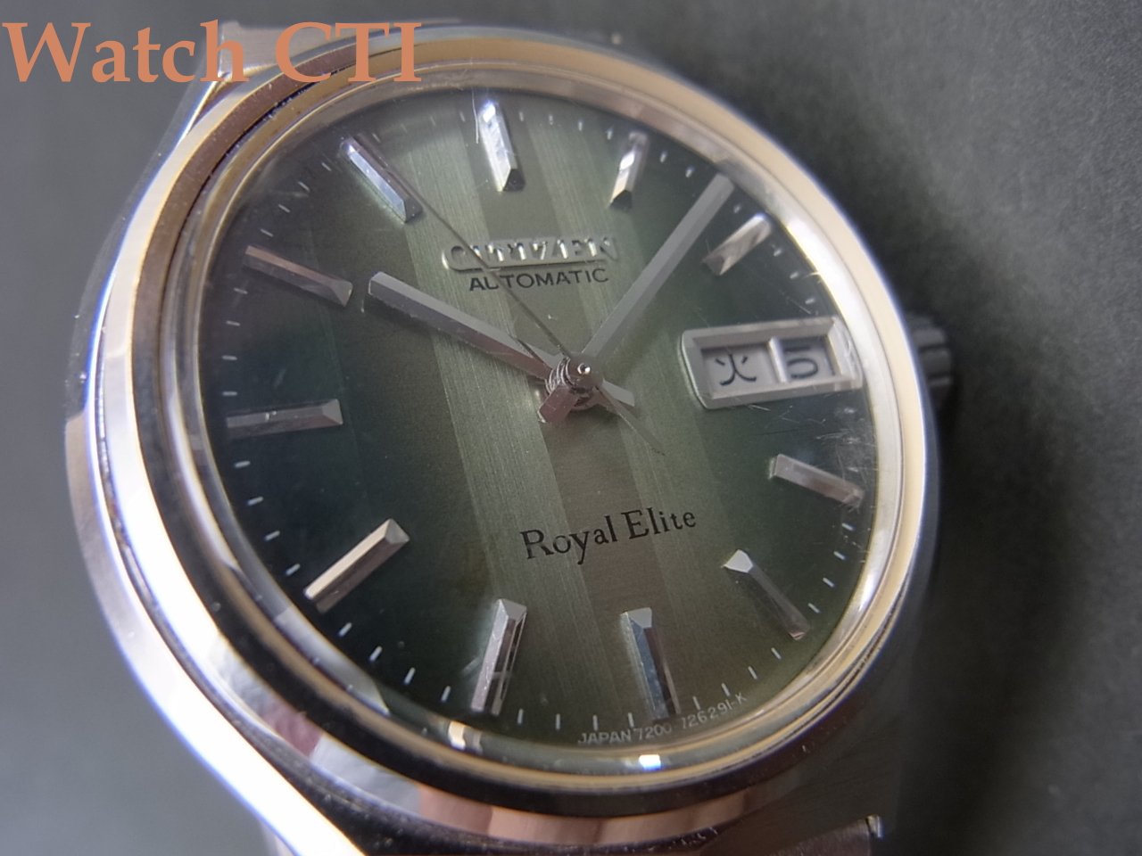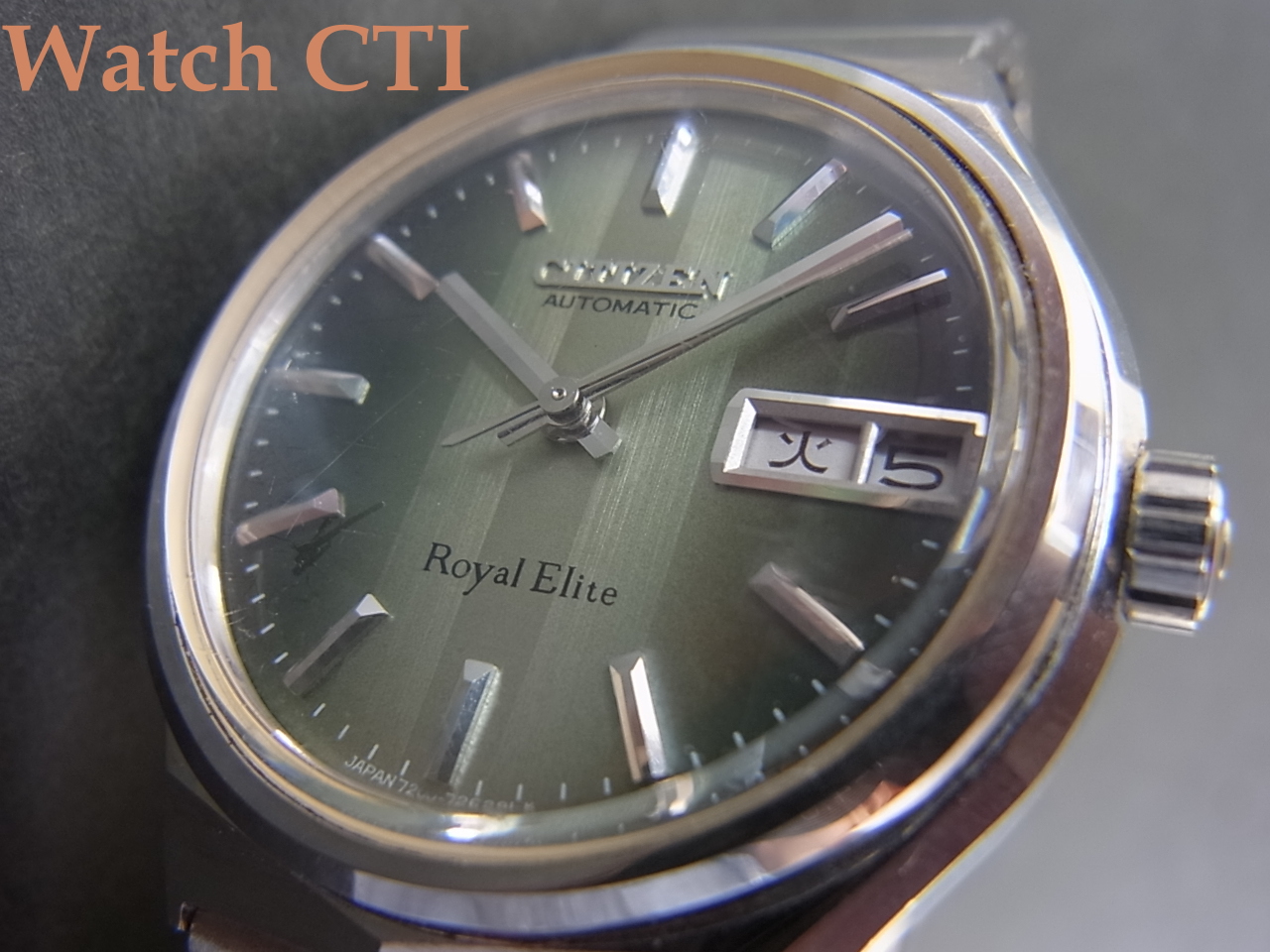 キャリバー7230を搭載したモデルは一般的にはレオパール10・ハイネス・クロノメーターの3種が知られていますが、今回入手のロイヤルエリートも7230搭載機種です。推測ですが、カラー文字板・変形ケース・ケースバックのメダルレス…等の仕様から、高級10振動機をより若年層を購買対象として企画されたモデルなのではないかと思われます。