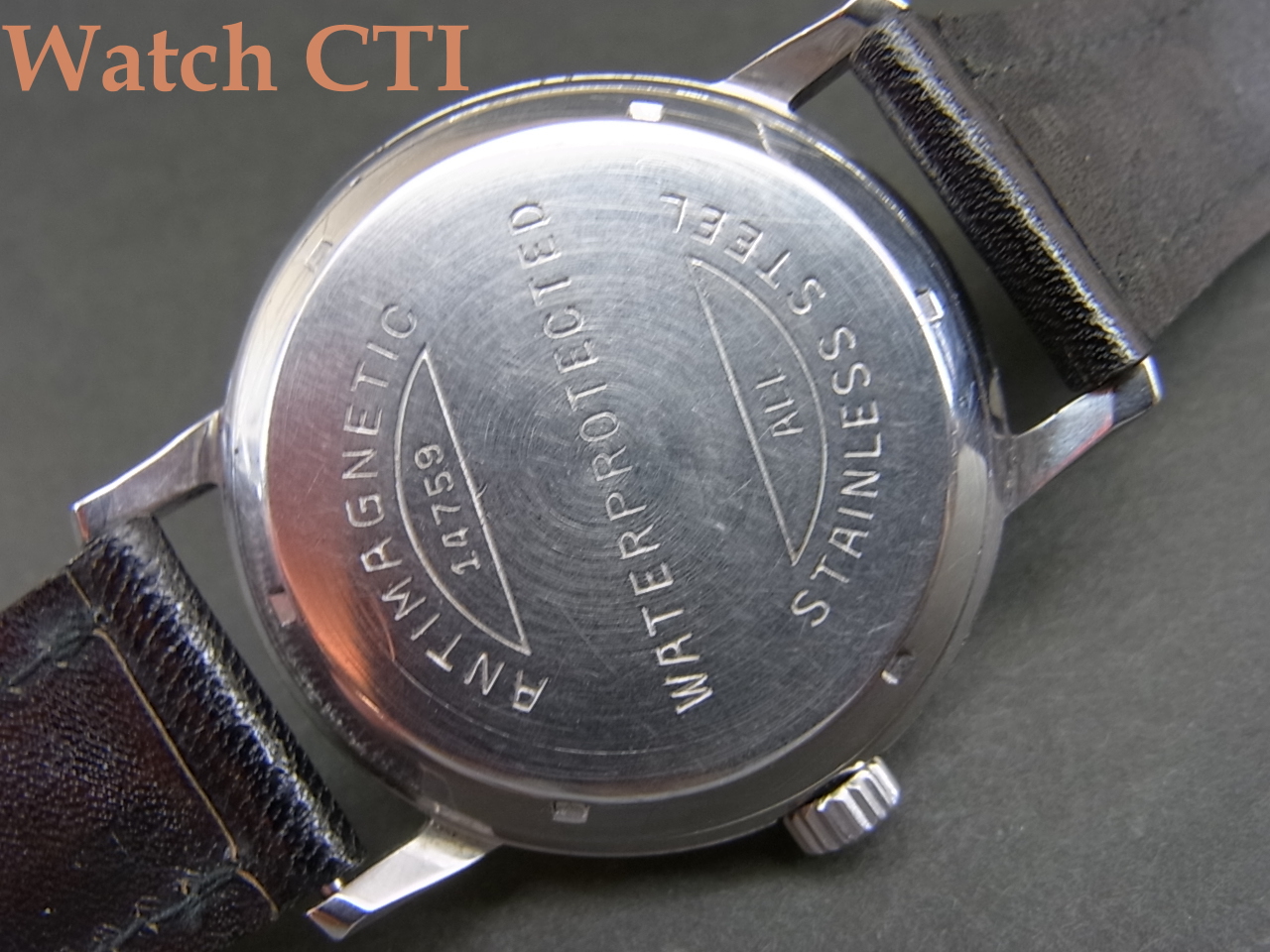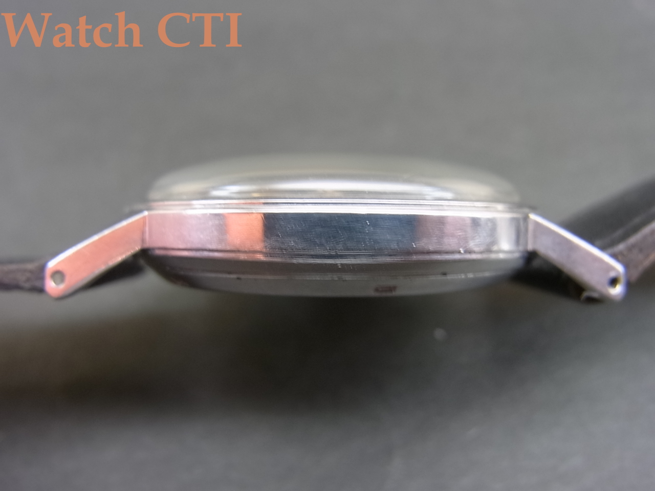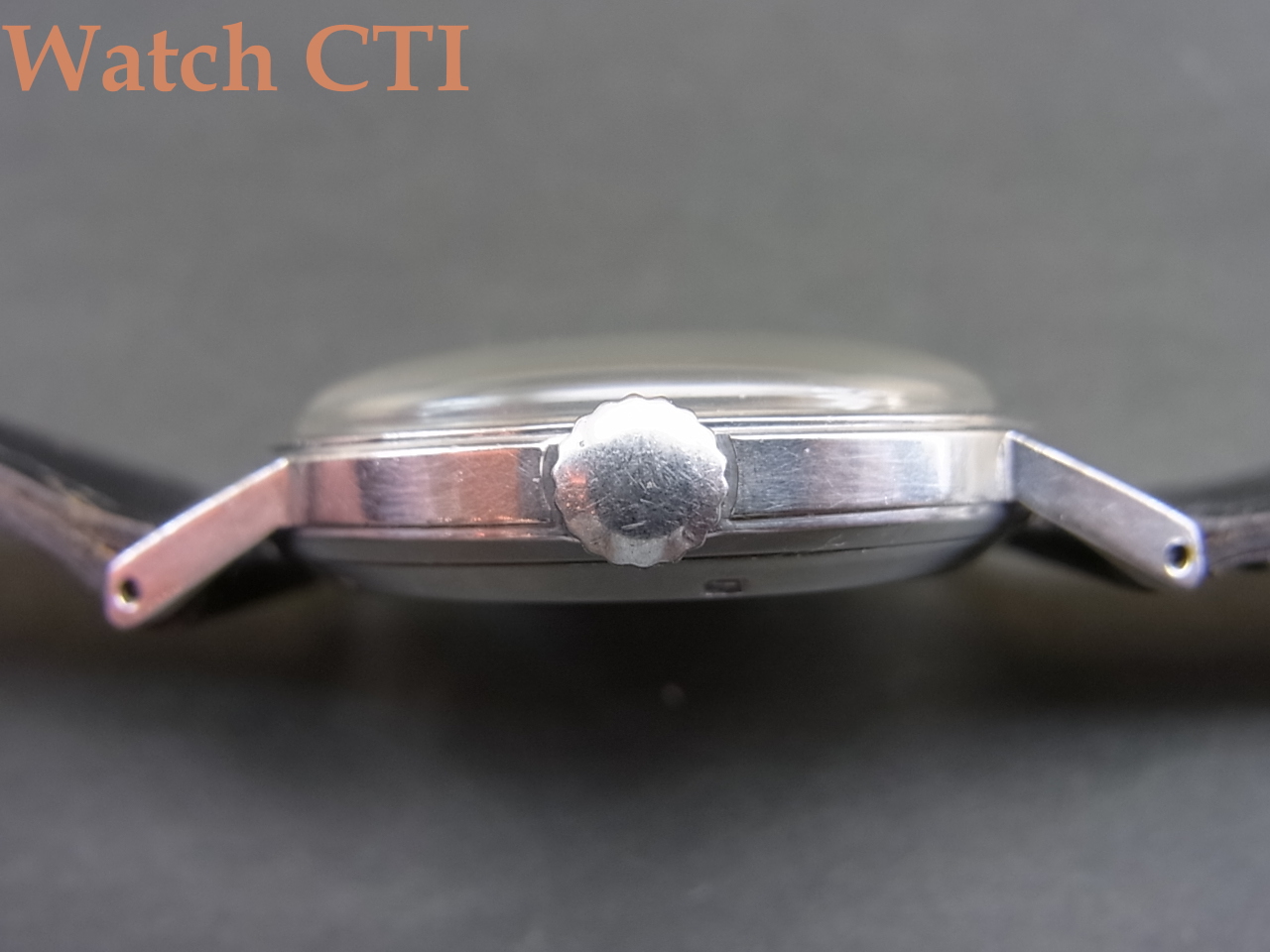 ★「防水」を意識した最初期の「スクリューバックケース」そして文字板には艶アリ黒に金文字で精悍!