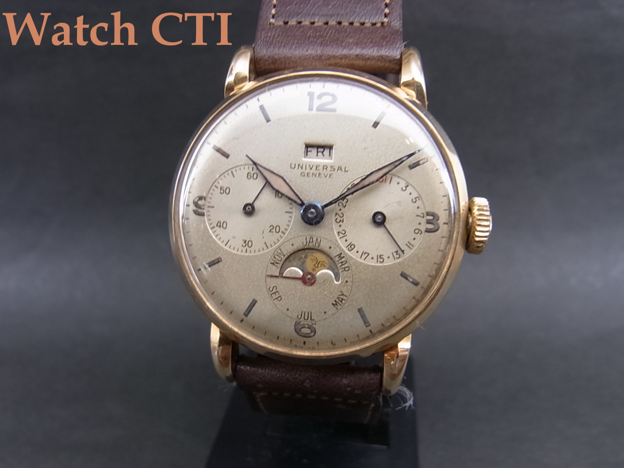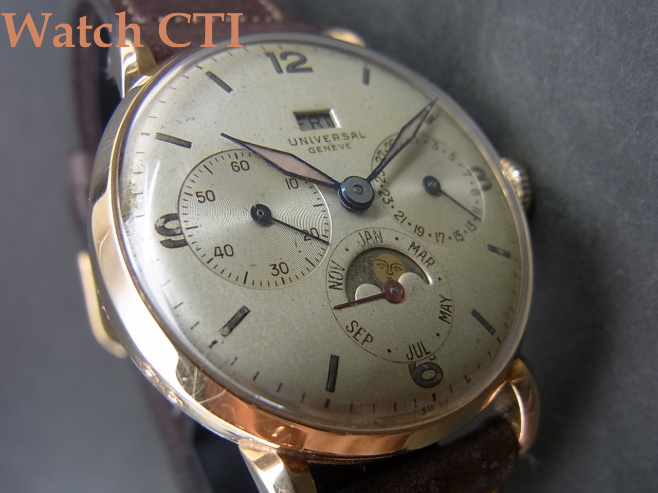 ★最近評価UPが著しい老舗ユニバーサル・ジュネーブのムーンフェイズ・トリプルカレンダーです。