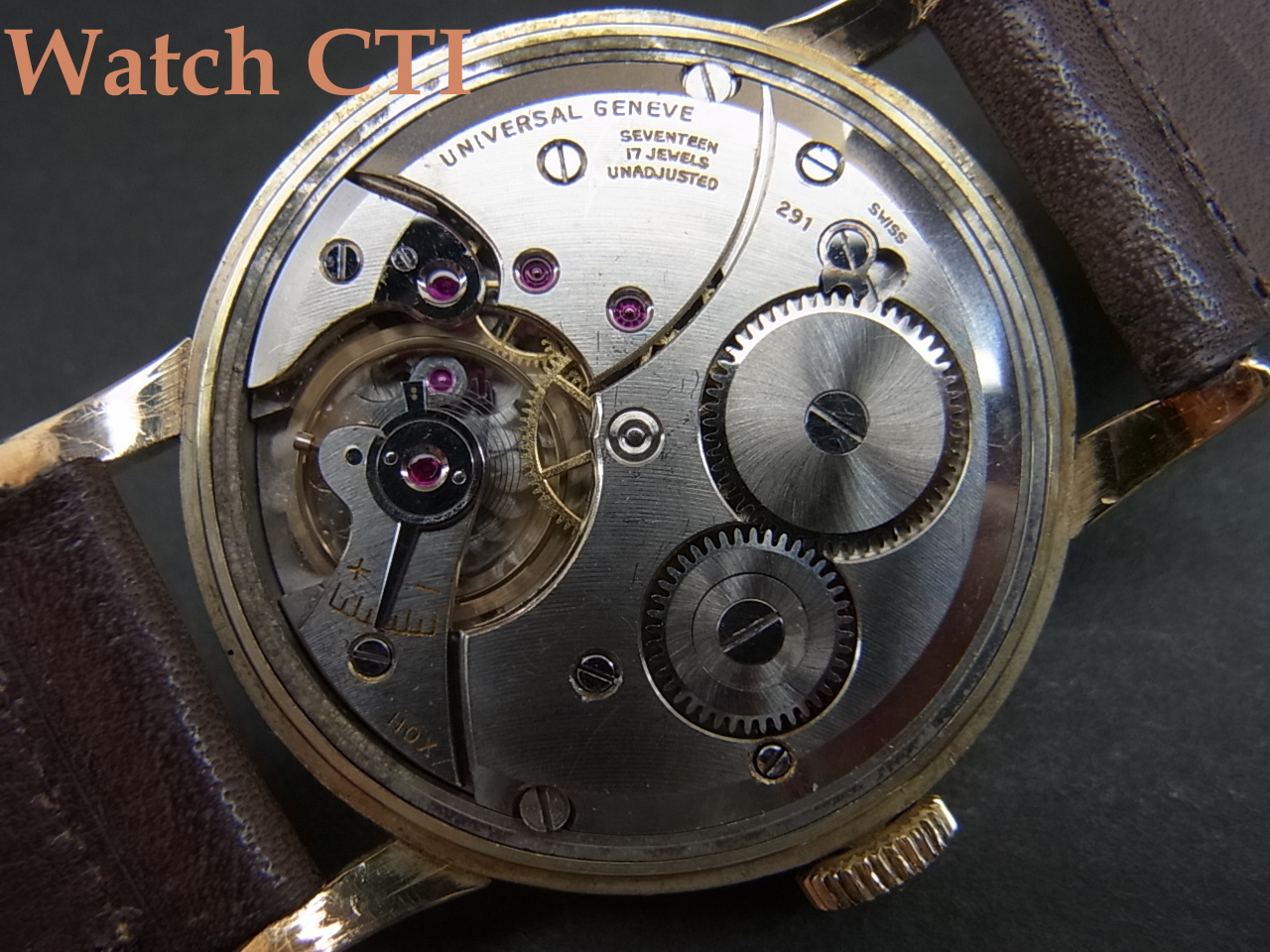 *ムーブメントはOHしたばかりです。ユニバーサルの機械は仕上げも美しくまた、現品C.291は地板サイズも13型と大きく見ごたえがありますね!