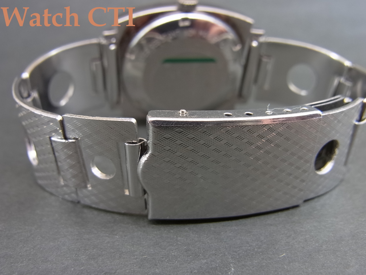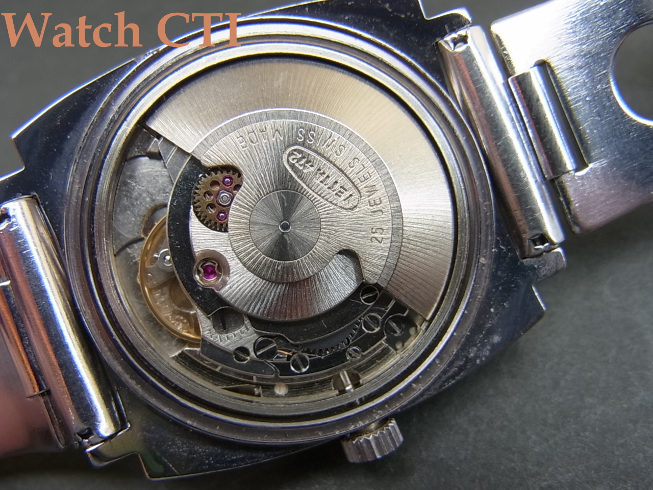 *全体に使用された痕跡は認められず、おそらく未使用ストック品だったのではないでしょうか。クロムメッキのミドルケースにも剥離した箇所は認められず、ステンレス右の無垢なんじゃない?ってくらい綺麗です。機械にはETA2472を搭載しており、そのまんまのストックムーブではなくちゃんとヴェッタ仕様に誂てありますね!